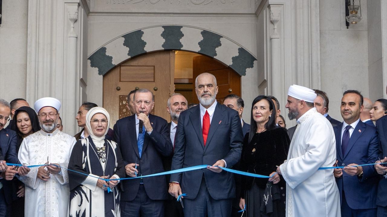 Diyanet İşleri Başkanı Ali Erbaş`ın okuduğu duanın ardından Cumhurbaşkanı Erdoğan, Arnavutluk Başbakanı Rama ve beraberindeki protokol üyeleri kurdele keserek açılışı gerçekleştirdi.