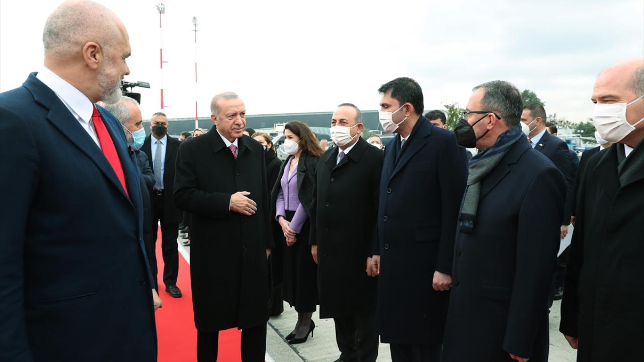 Cumhurbaşkanı Erdoğan ile Çevre, Şehircilik ve İklim Değişikliği Bakanı Murat Kurum, Dışişleri Bakanı Mevlüt Çavuşoğlu, Gençlik ve Spor Bakanı Mehmet Muharrem Kasapoğlu, İçişleri Bakanı Süleyman Soylu, Kültür ve Turizm Bakanı Mehmet Nuri Ersoy, Milli Savunma Bakanı Hulusi Akar, Cumhurbaşkanlığı İletişim Başkanı Fahrettin Altun, Cumhurbaşkanlığı Savunma Sanayii Başkanı İsmail Demir ve Cumhurbaşkanlığı Sözcüsü İbrahim Kalın da Arnavutluk`a gitti.
