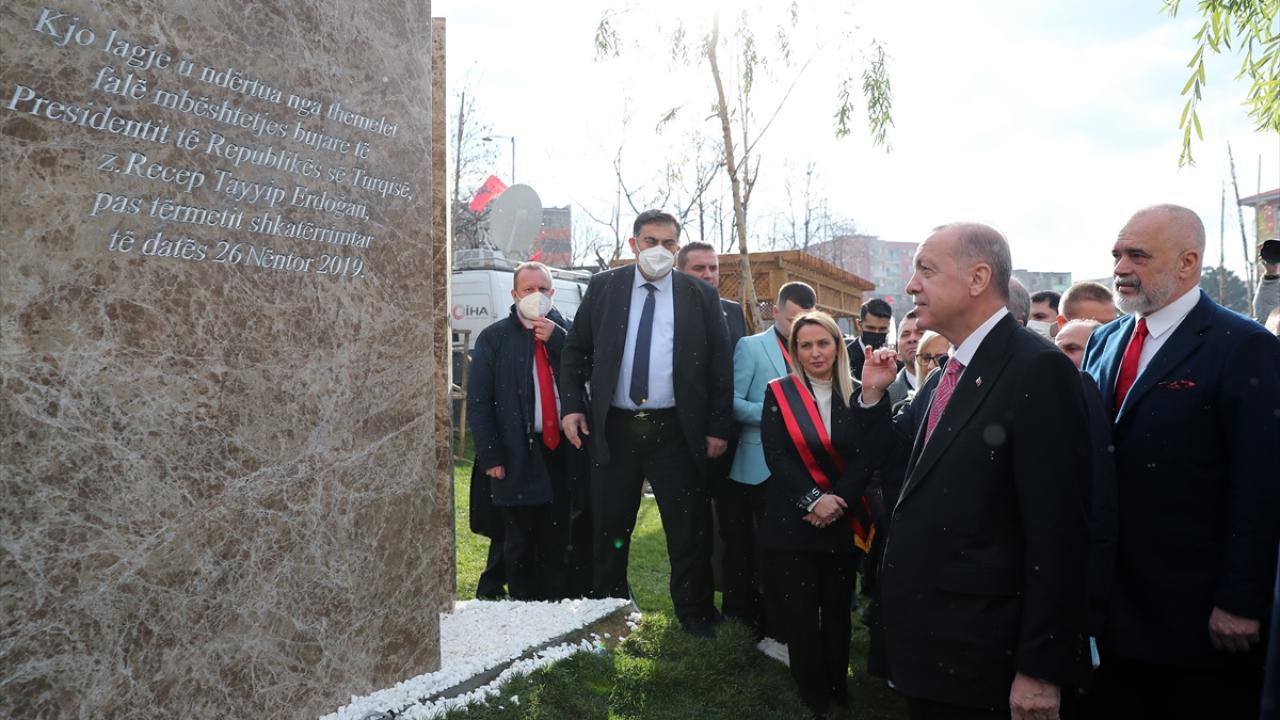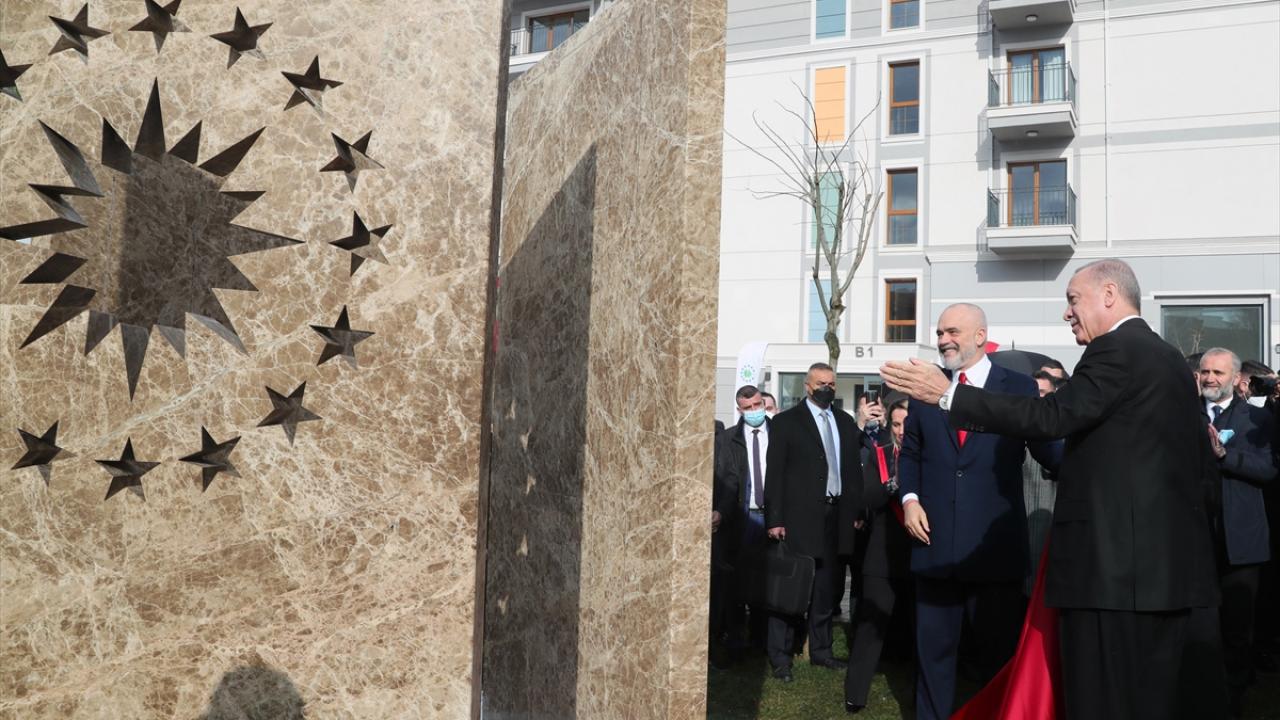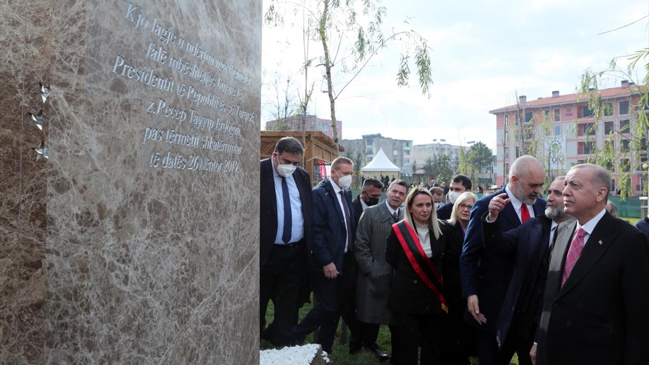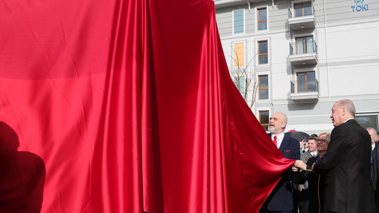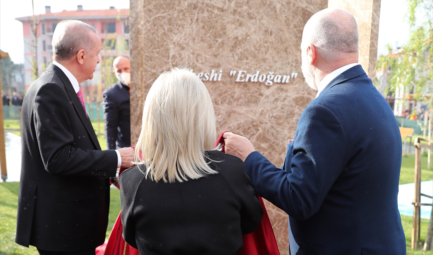 Cumhurbaşkanı Erdoğan, Arnavutluk Başbakanı Rama ile konutların olduğu bölgede isminin verildiği meydanın açılışını da yaptı.