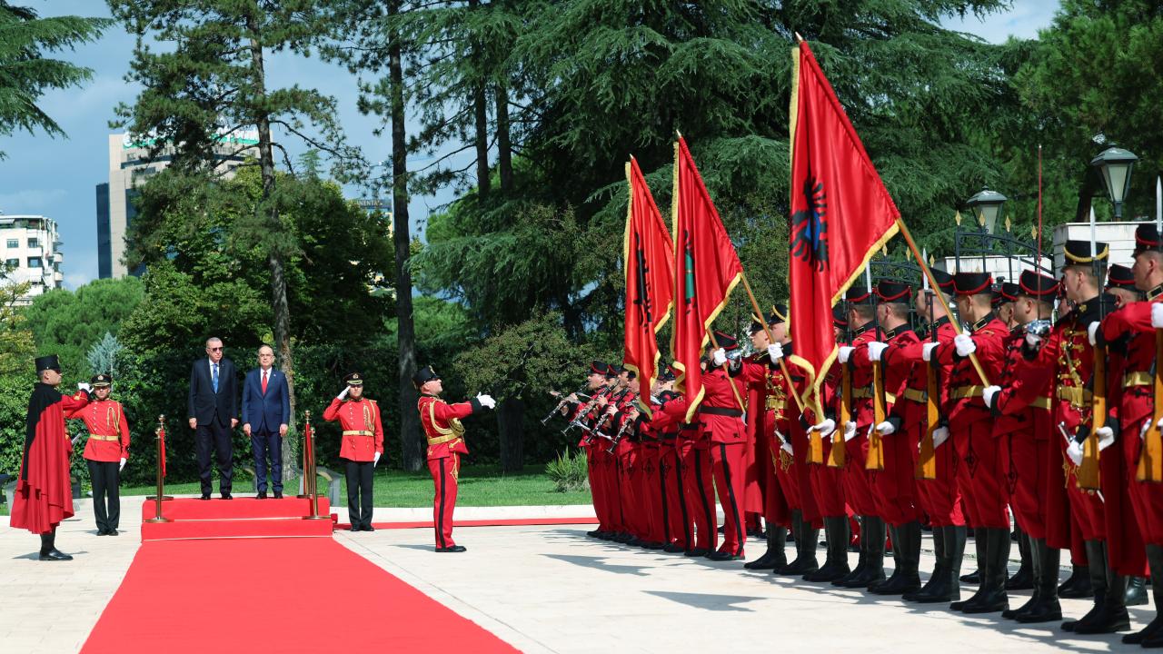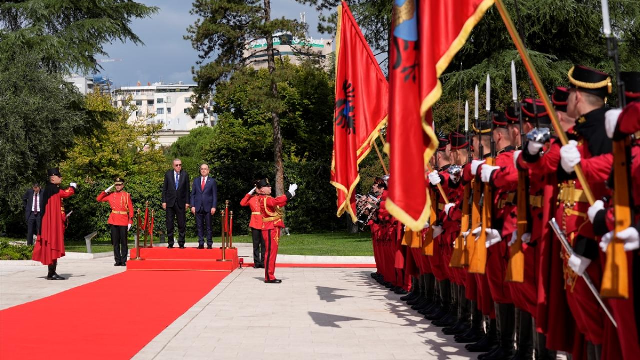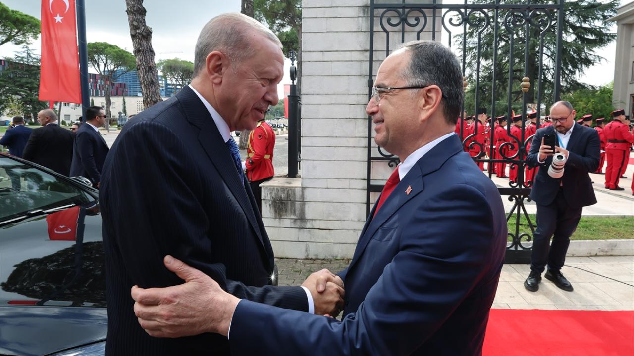 Cumhurbaşkanı Erdoğan, Tiran Uluslararası Rahibe Teresa Havalimanı`nda Arnavutluk Başbakan Yardımcısı ve Altyapı ve Enerji Bakanı Belinda Balluku, Dışişleri Bakanı Igli Hasani, İçişleri Bakanı Ervin Hoxha, Eğitim ve Spor Bakanı Ogerta Manastirliu, Arnavutluk`un Ankara Büyükelçisi Blerta Kadzadej, Devlet Protokolü Genel Müdürü Mamica Toska, Dışişleri Bakanı Hakan Fidan, Tiran Büyükelçisi Tayyar Kağan Atay ve diğer yetkililer tarafından törenle karşılandı.