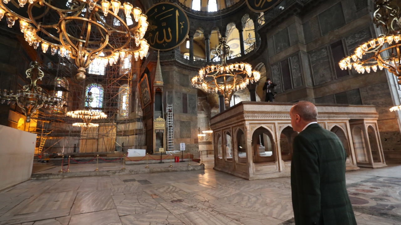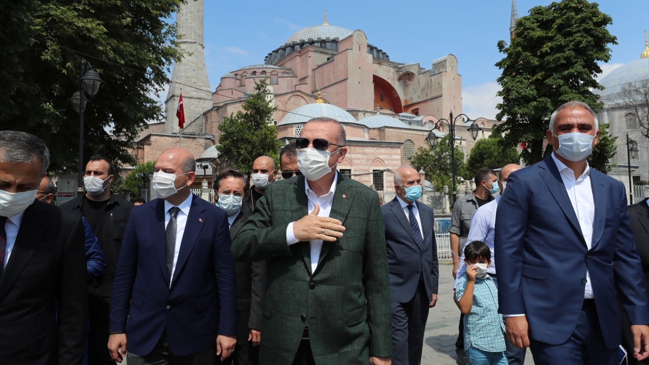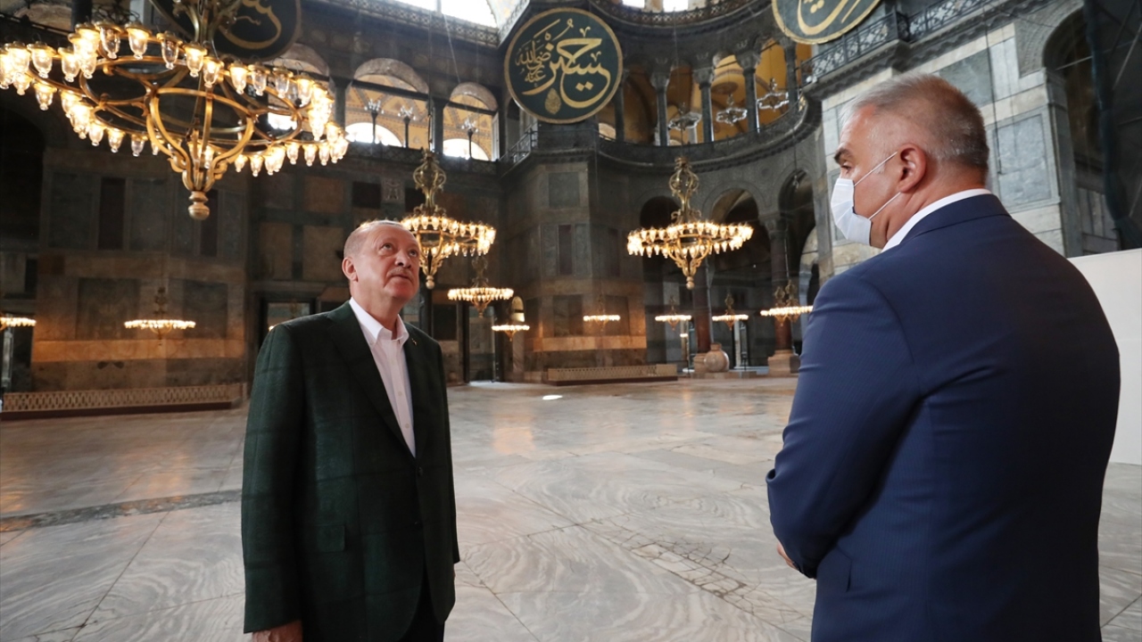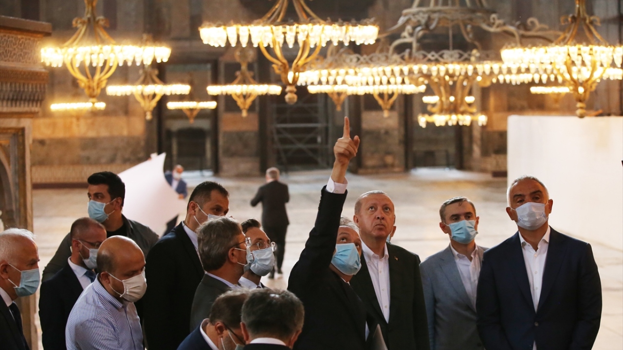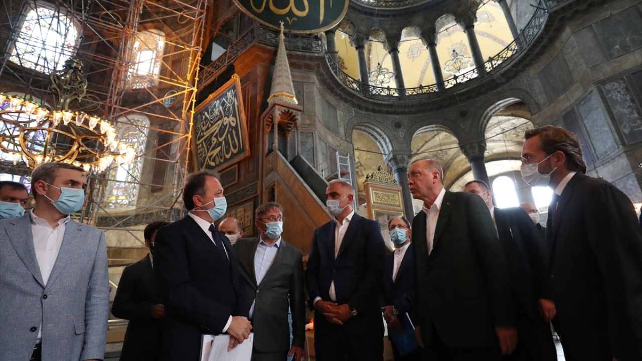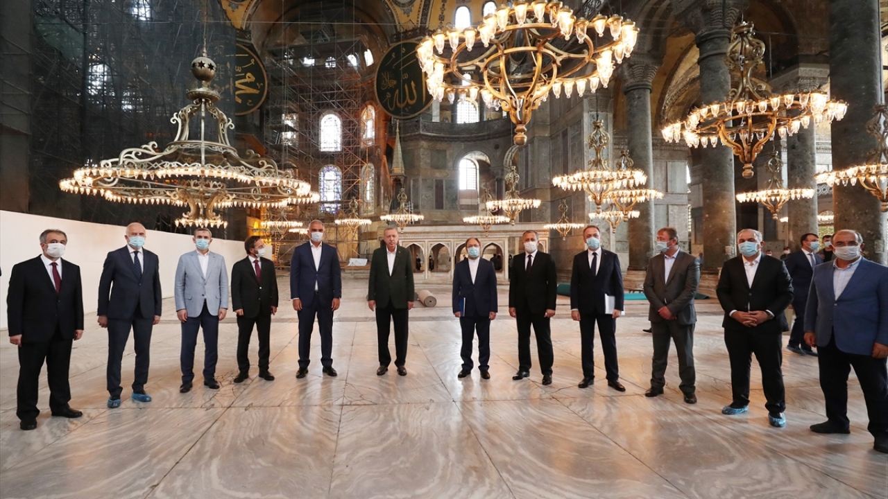 Cumhurbaşkanı Recep Tayyip Erdoğan, 24 Temmuz'da kılınacak cuma namazı ile 86 yıl sonra ibadete açılacak Ayasofya Camii'nde inceleme yaptı.