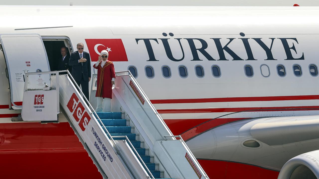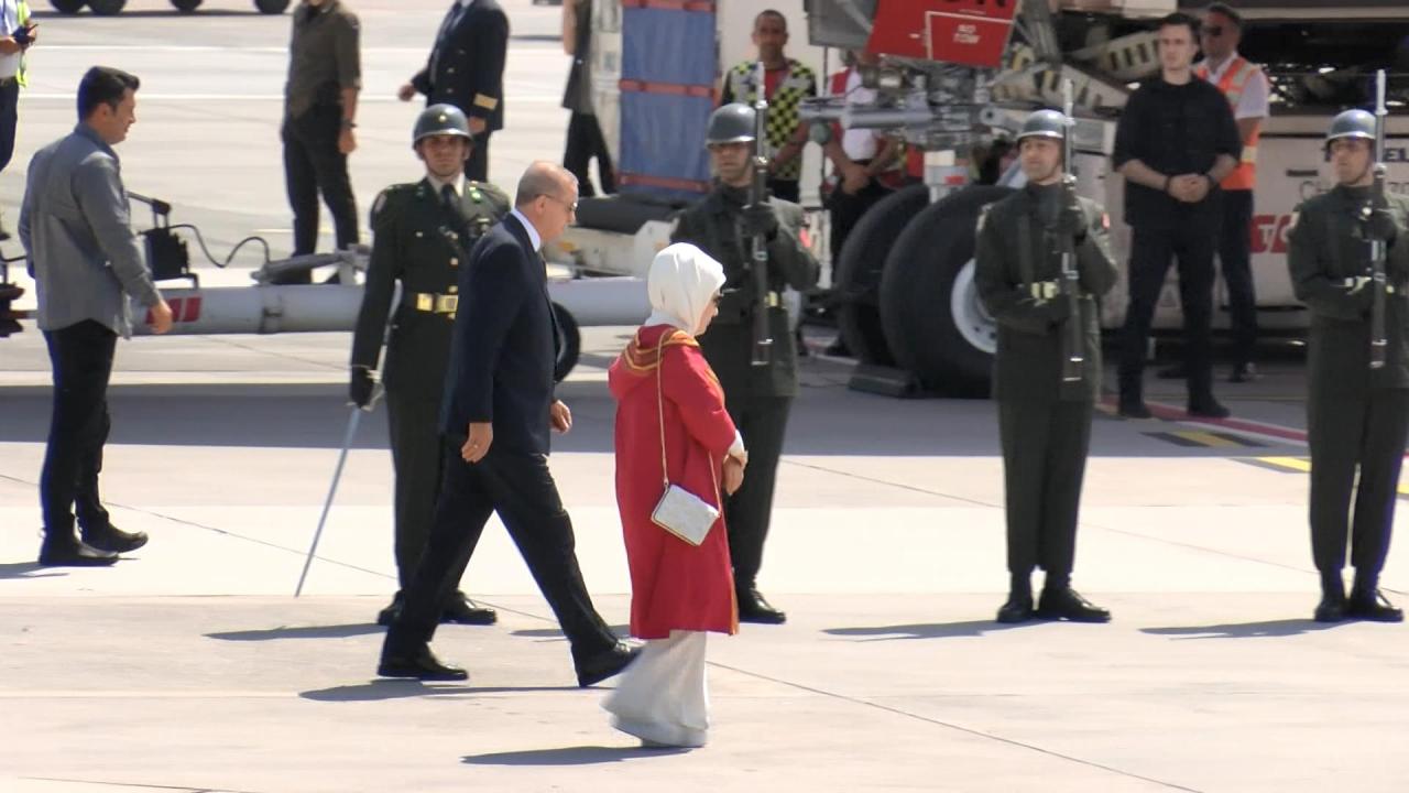 Cumhurbaşkanı Erdoğan`a eşi Emine Erdoğan, Dışişleri Bakanı Mevlüt Çavuşoğlu, Milli Eğitim Bakanı Mahmut Özer, Tarım ve Orman Bakanı Vahit Kirişci, Ulaştırma ve Altyapı Bakanı Adil Karaismailoğlu, AK Parti Sözcüsü Ömer Çelik, Cumhurbaşkanlığı İletişim Başkanı Fahrettin Altun ve Cumhurbaşkanlığı Sözcüsü İbrahim Kalın da eşlik etti.