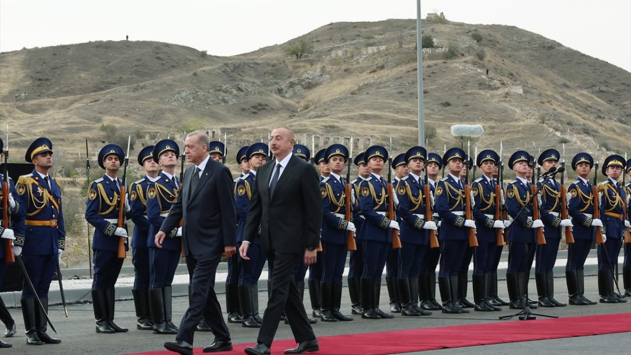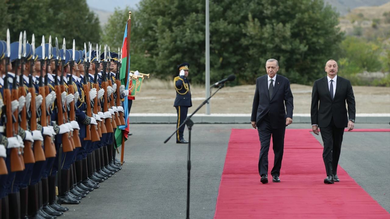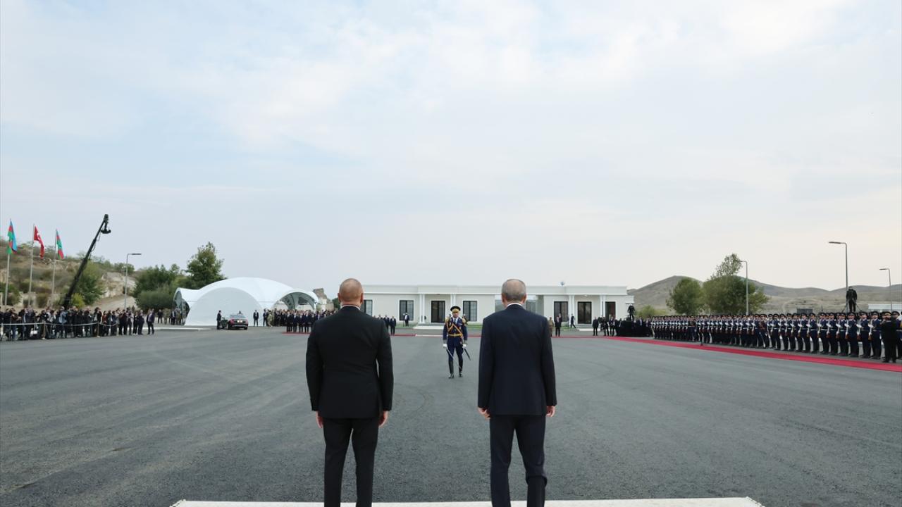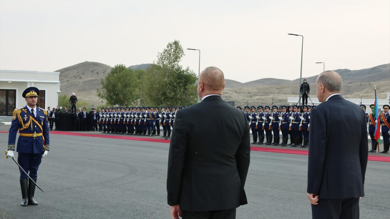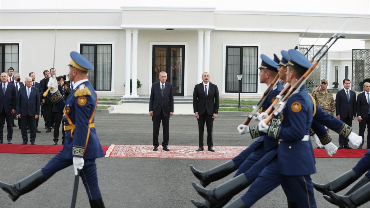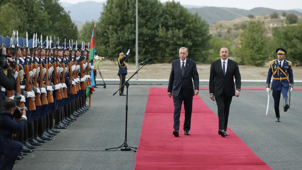 Cumhurbaşkanı Recep Tayyip Erdoğan, ziyarette bulunduğu Azerbaycan'ın Cebrayıl şehrinde, Cumhurbaşkanı İlham Aliyev tarafından resmi törenle karşılandı.