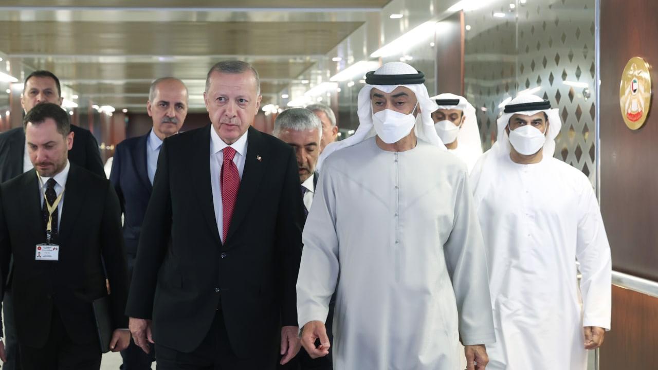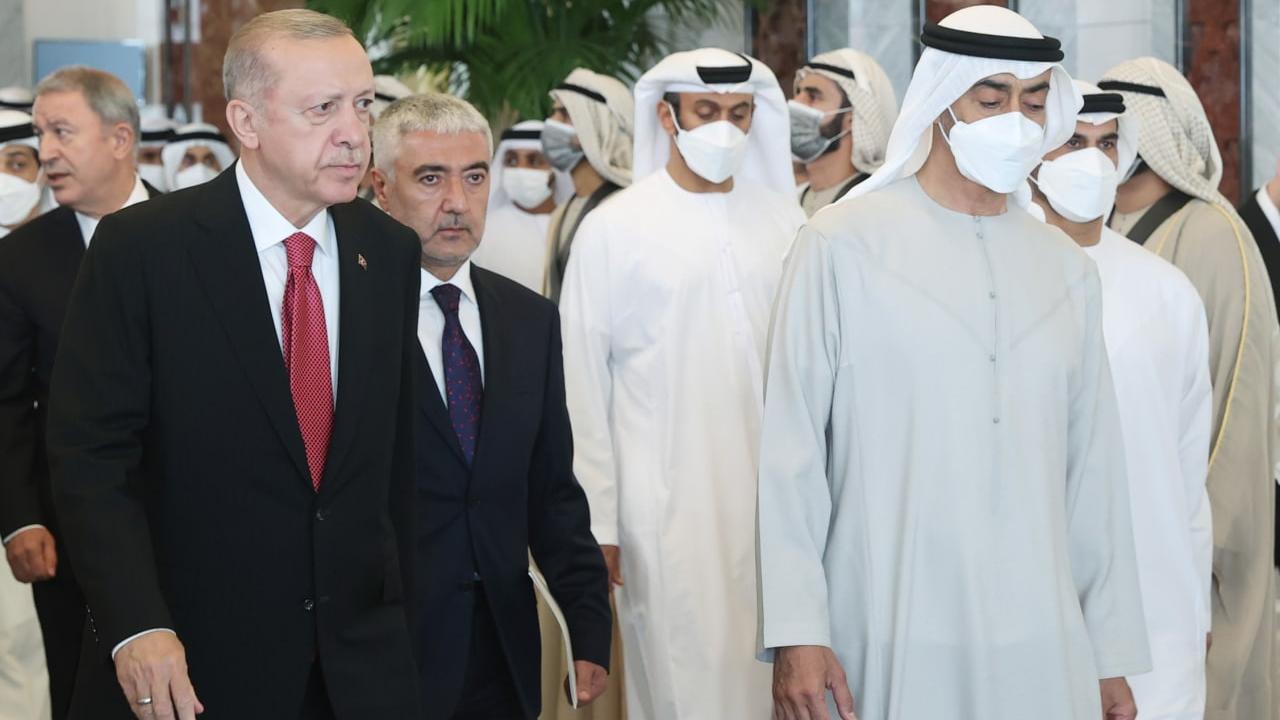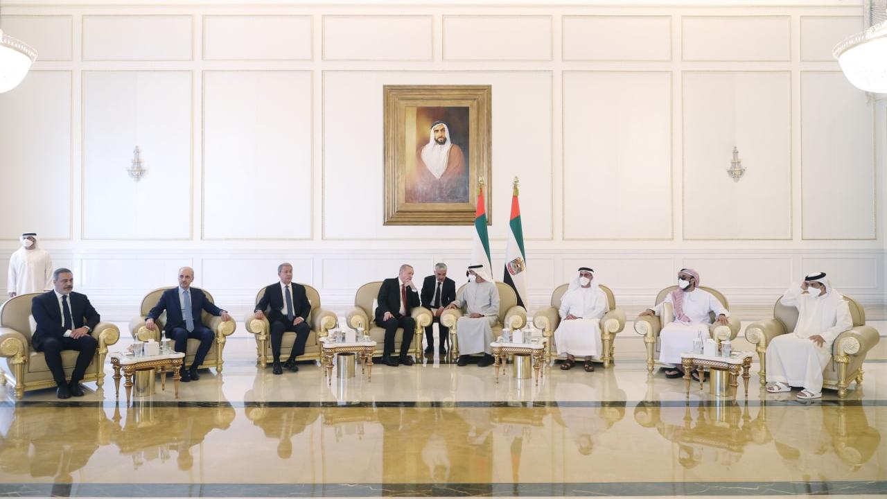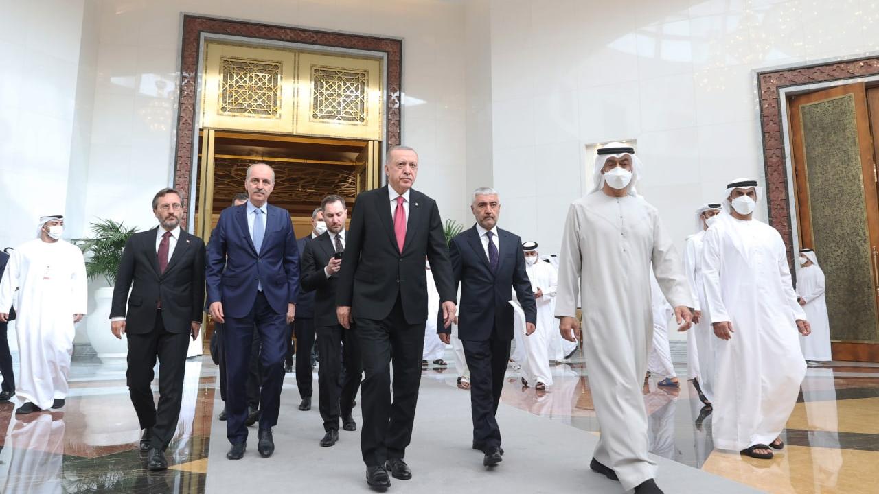 Cumhurbaşkanı Erdoğan ile Milli Savunma Bakanı Hulusi Akar, AK Parti Genel Başkanvekili Numan Kurtulmuş, MİT Başkanı Hakan Fidan, Cumhurbaşkanlığı İletişim Başkanı Fahrettin Altun, Cumhurbaşkanlığı Sözcüsü İbrahim Kalın ve Cumhurbaşkanı Başdanışmanı Sefer Turan da Abu Dabi`ye gitti.