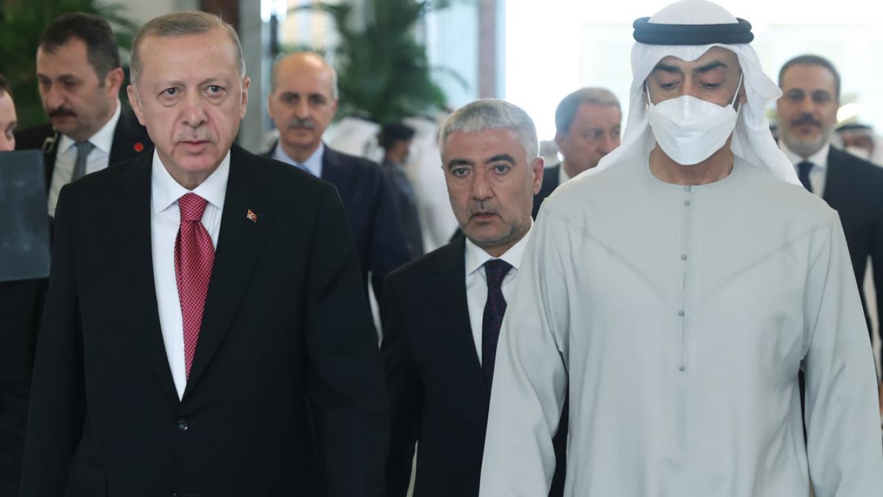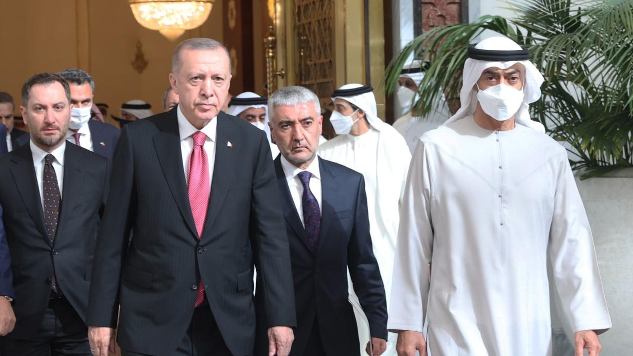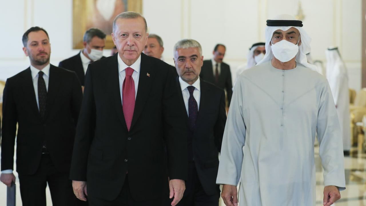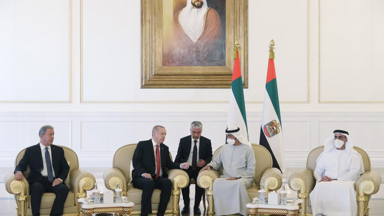 Cumhurbaşkanı Erdoğan ile Milli Savunma Bakanı Hulusi Akar, AK Parti Genel Başkanvekili Numan Kurtulmuş, MİT Başkanı Hakan Fidan, Cumhurbaşkanlığı İletişim Başkanı Fahrettin Altun, Cumhurbaşkanlığı Sözcüsü İbrahim Kalın ve Cumhurbaşkanı Başdanışmanı Sefer Turan da Abu Dabi`ye gitti.