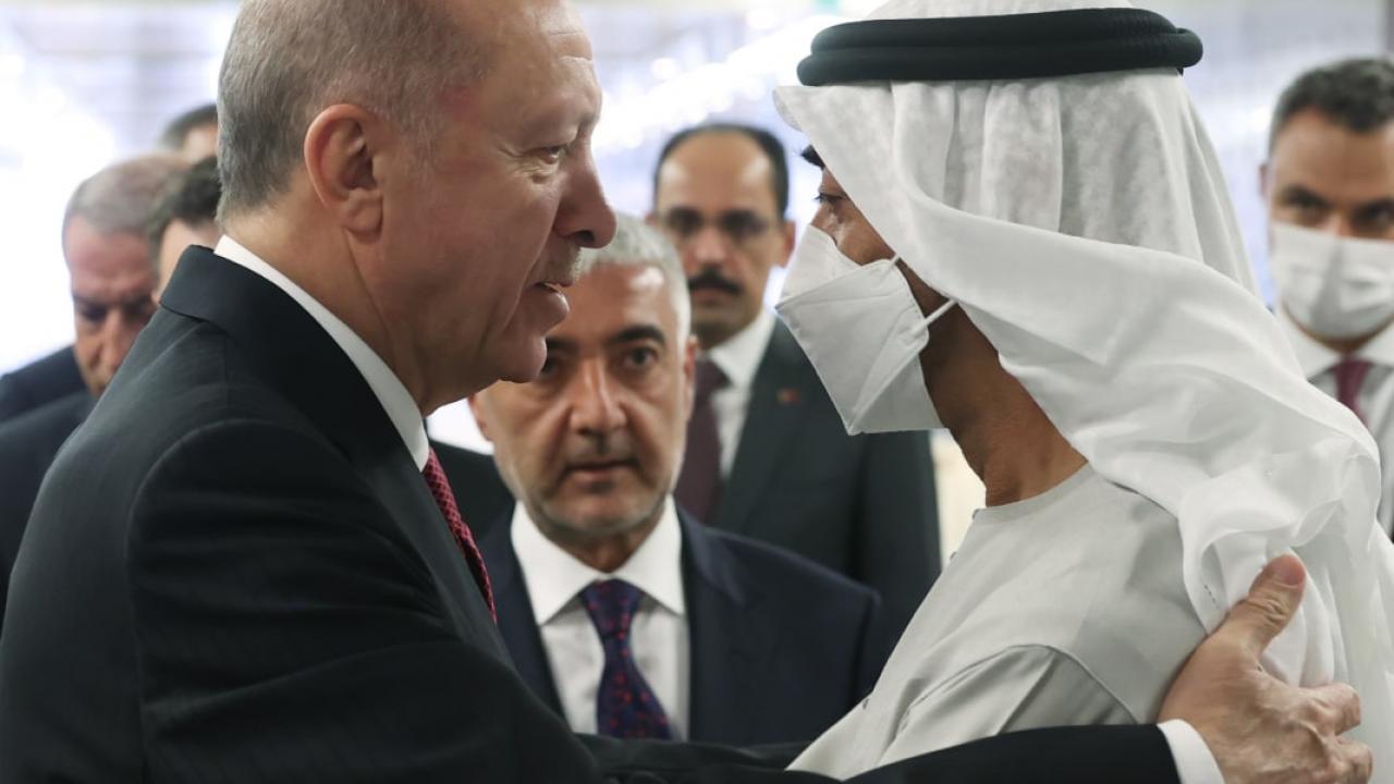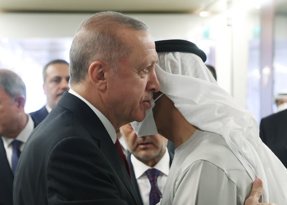 Erdoğan, havalimanında bir araya geldiği Nahyan`a, eski Devlet Başkanı Şeyh Halife bin Zayid Al-Nahyan`ın geçen hafta hayatını kaybetmesinden dolayı taziyelerini iletti.
