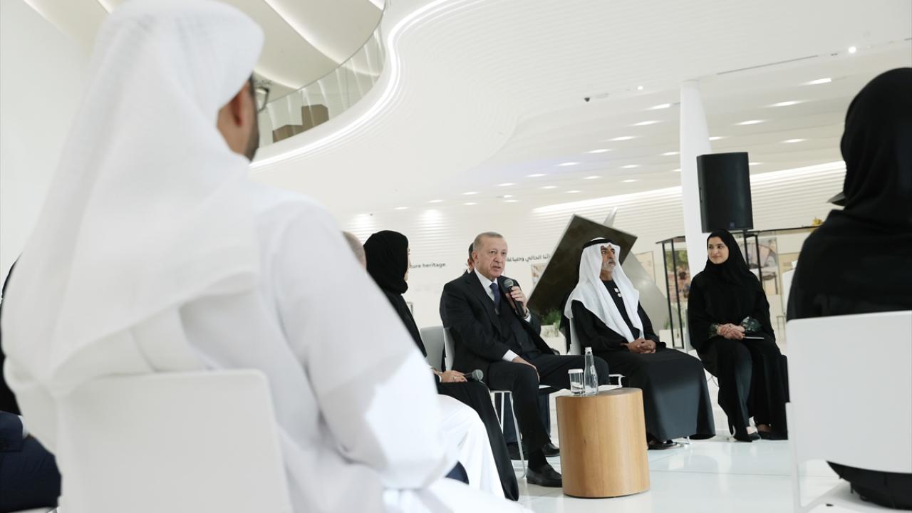 Cumhurbaşkanı Recep Tayyip Erdoğan, BAE'de gençlerle buluşmasında, "Uzay, teknoloji, start-up şirketleri ve bilimsel iş birliği gibi alanlarda ortak çalışmalarımızı hızla geliştirmeliyiz" dedi.
