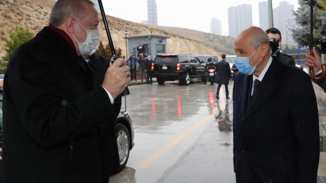 Cumhurbaşkanı Recep Tayyip Erdoğan, Milliyetçi Hareket Partisi (MHP) Genel Başkanı Devlet Bahçeli’yi evinde ziyaret etti. Görüşme 1 saat 10 dakika sürdü.