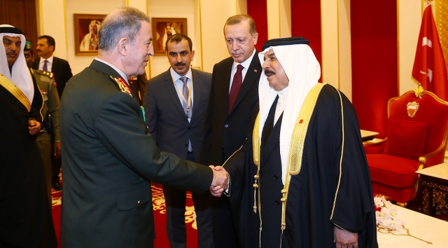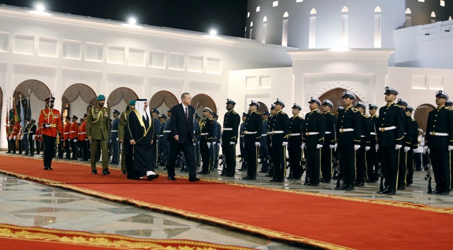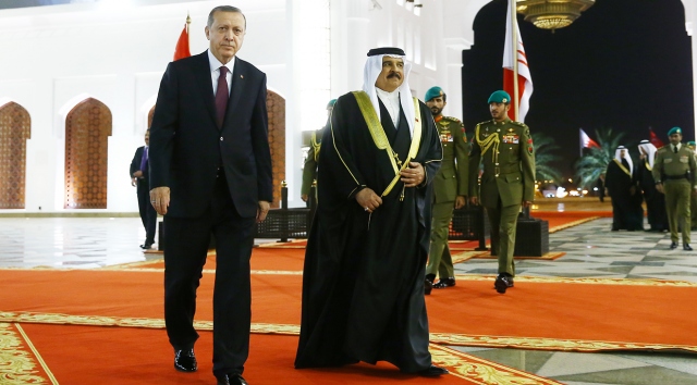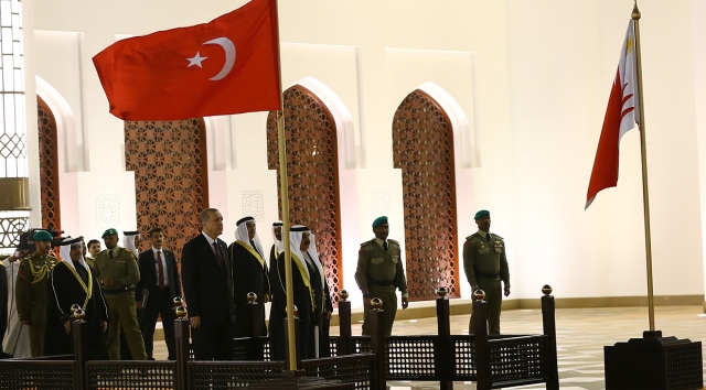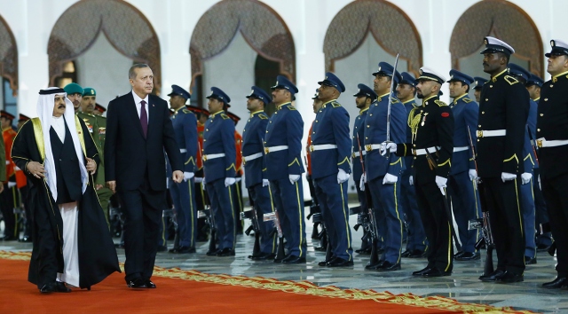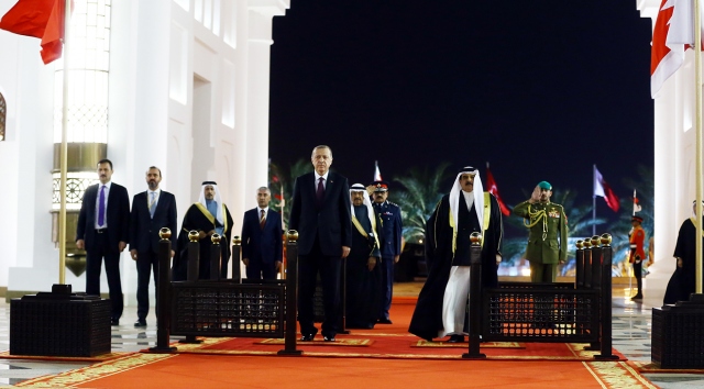 Erdoğan, Bahreyn Kralı Al Halife tarafından resmi törenle karşılandı.