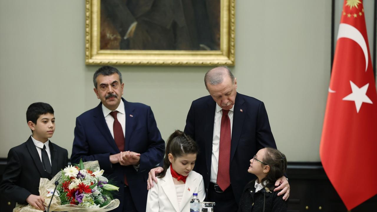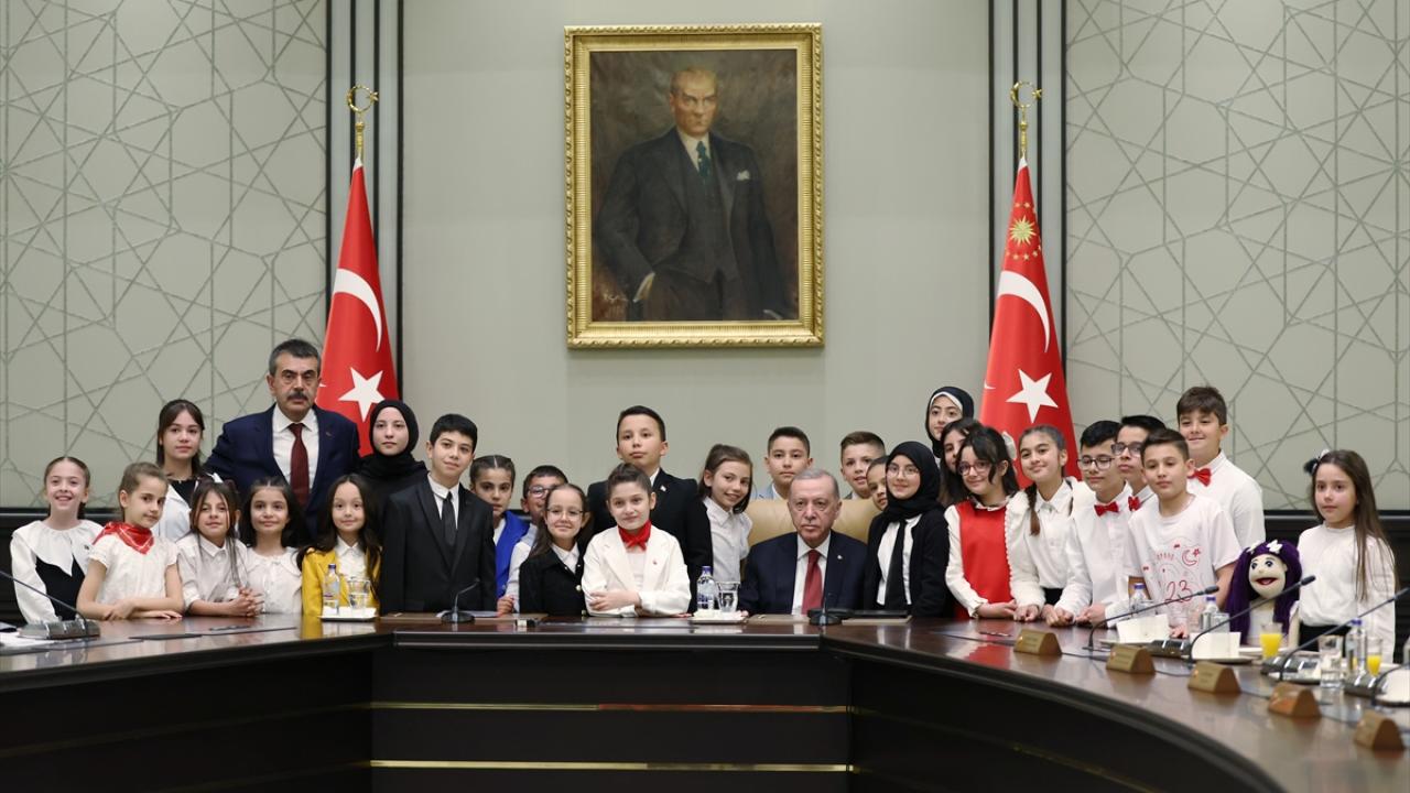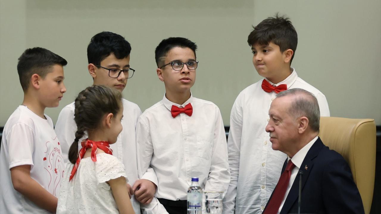 Cumhurbaşkanı Erdoğan, Bakan Tekin ve beraberindeki çocukları kabul etti