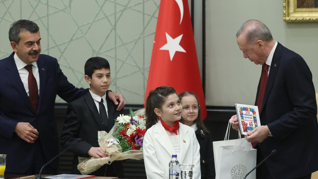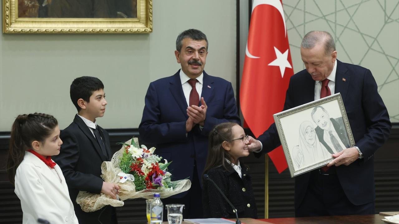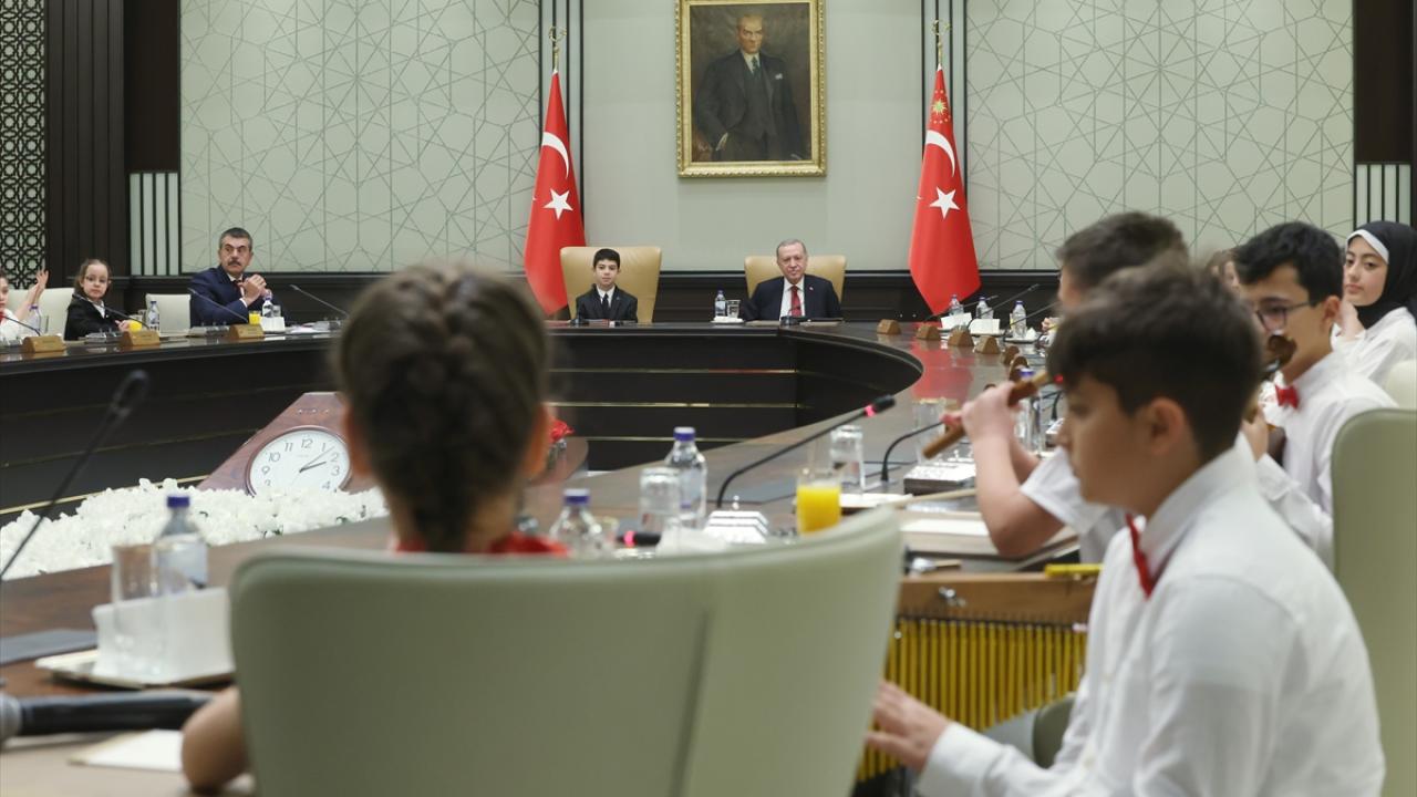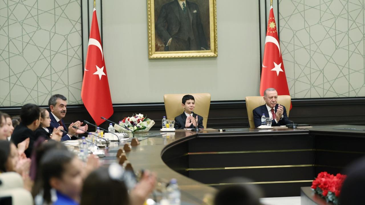 Cumhurbaşkanı Erdoğan, Bakan Tekin ve beraberindeki çocukları kabul etti