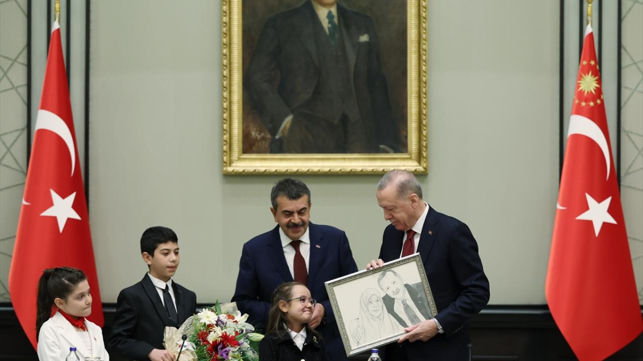 Cumhurbaşkanı Recep Tayyip Erdoğan, Milli Eğitim Bakanı Yusuf Tekin ve beraberindeki çocukları kabul etti.