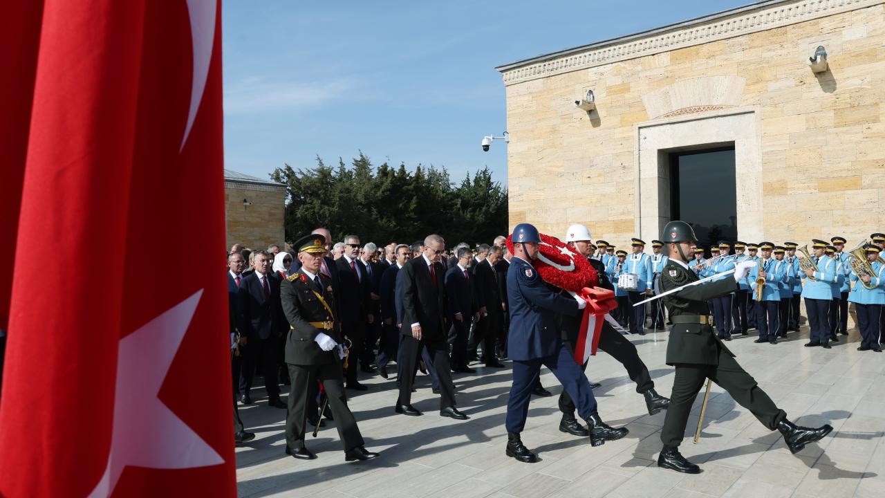 Türkiye Cumhuriyeti'nin 100. kuruluş yıl dönümü dolayısıyla Cumhurbaşkanı Recep Tayyip Erdoğan başkanlığındaki devlet erkanı, Anıtkabir'i ziyaret etti.