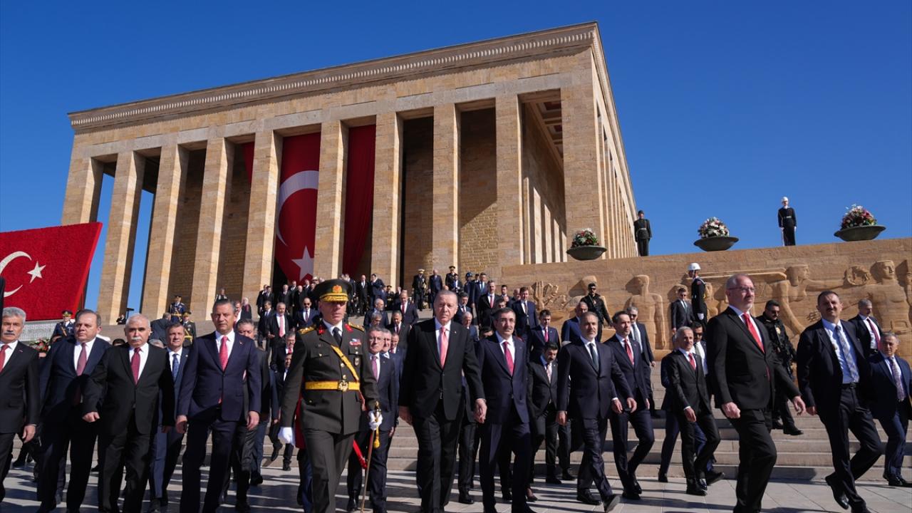 Türkiye Cumhuriyeti'nin 101. kuruluş yıl dönümü dolayısıyla Cumhurbaşkanı Recep Tayyip Erdoğan başkanlığındaki devlet erkanı, Anıtkabir'i ziyaret etti.