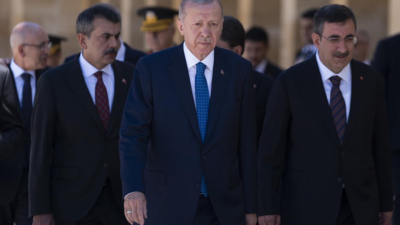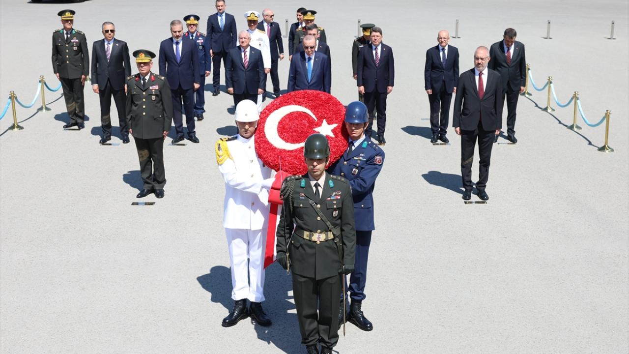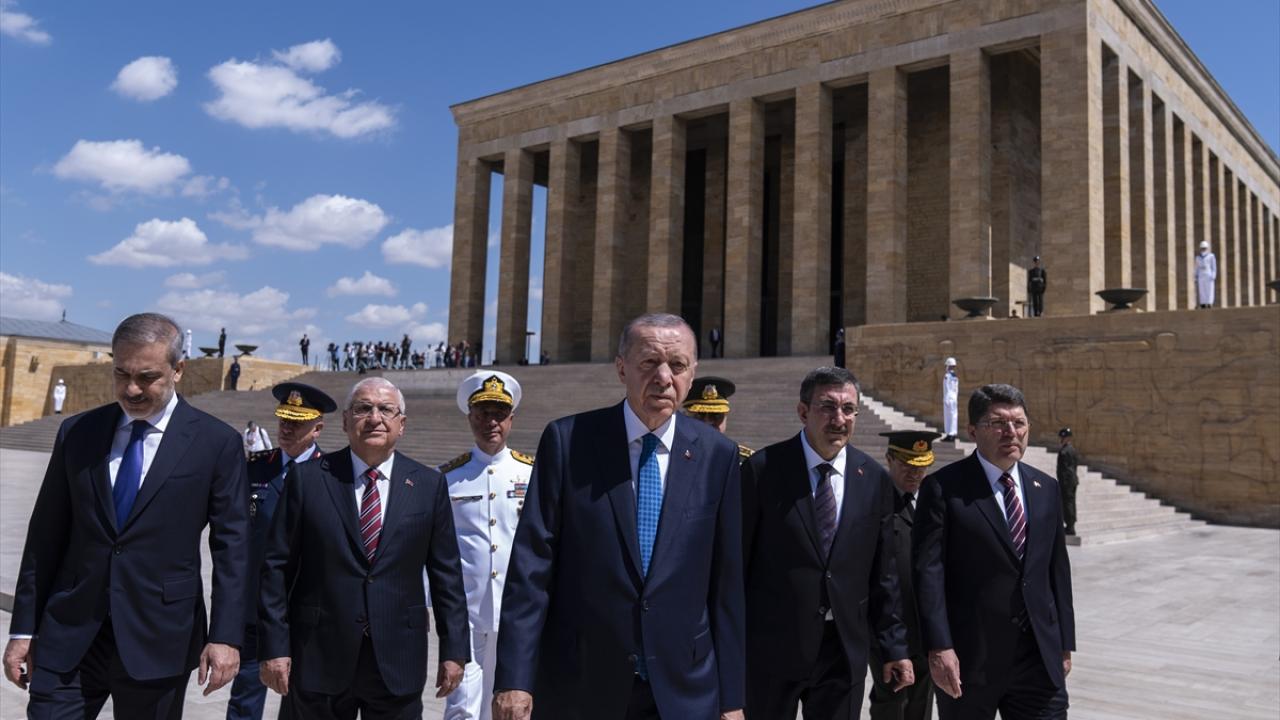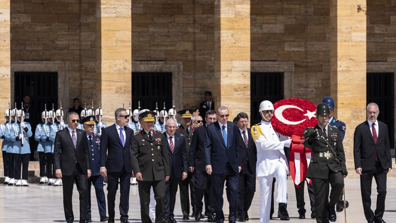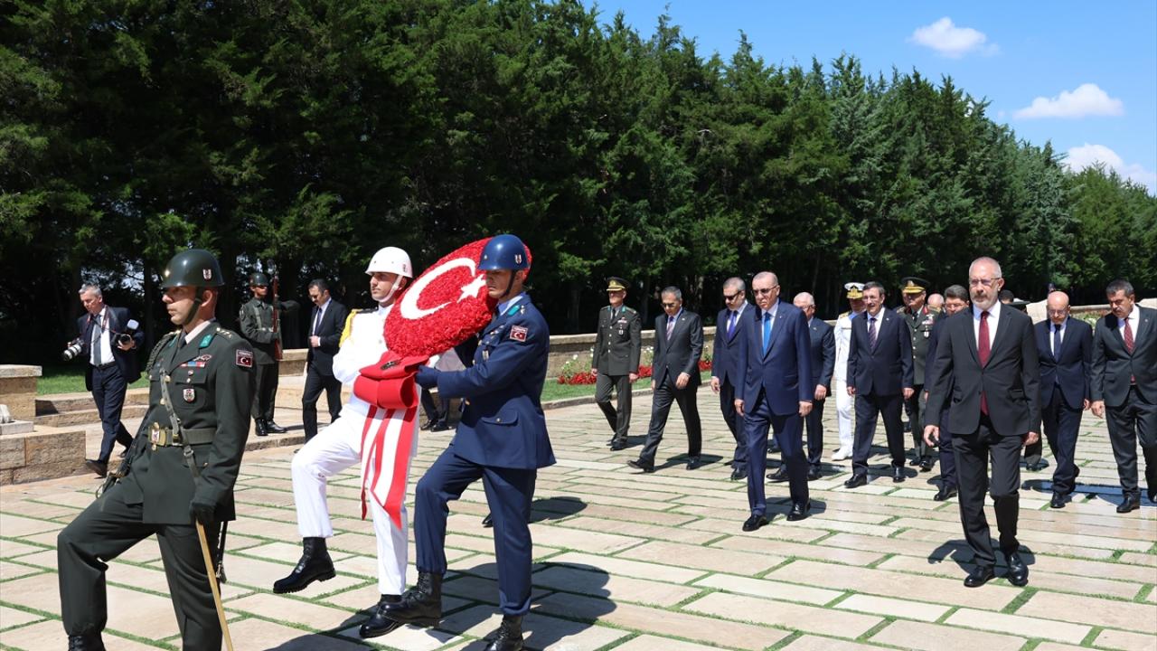 Erdoğan`ın Aslanlı Yol`un başındaki yerini almasının ardından başlayan törene, Cumhurbaşkanı Yardımcısı Cevdet Yılmaz, Adalet Bakanı Yılmaz Tunç, Dışişleri Bakanı Hakan Fidan, Hazine ve Maliye Bakanı Mehmet Şimşek, İçişleri Bakanı Ali Yerlikaya, Milli Eğitim Bakanı Yusuf Tekin, Milli Savunma Bakanı Yaşar Güler, Genelkurmay Başkanı Orgeneral Metin Gürak, Kara Kuvvetleri Komutanı Orgeneral Selçuk Bayraktaroğlu, Deniz Kuvvetleri Komutanı Oramiral Ercüment Tatlıoğlu ve Hava Kuvvetleri Komutanı Hava Orgeneral Ziya Cemal Kadıoğlu katıldı.