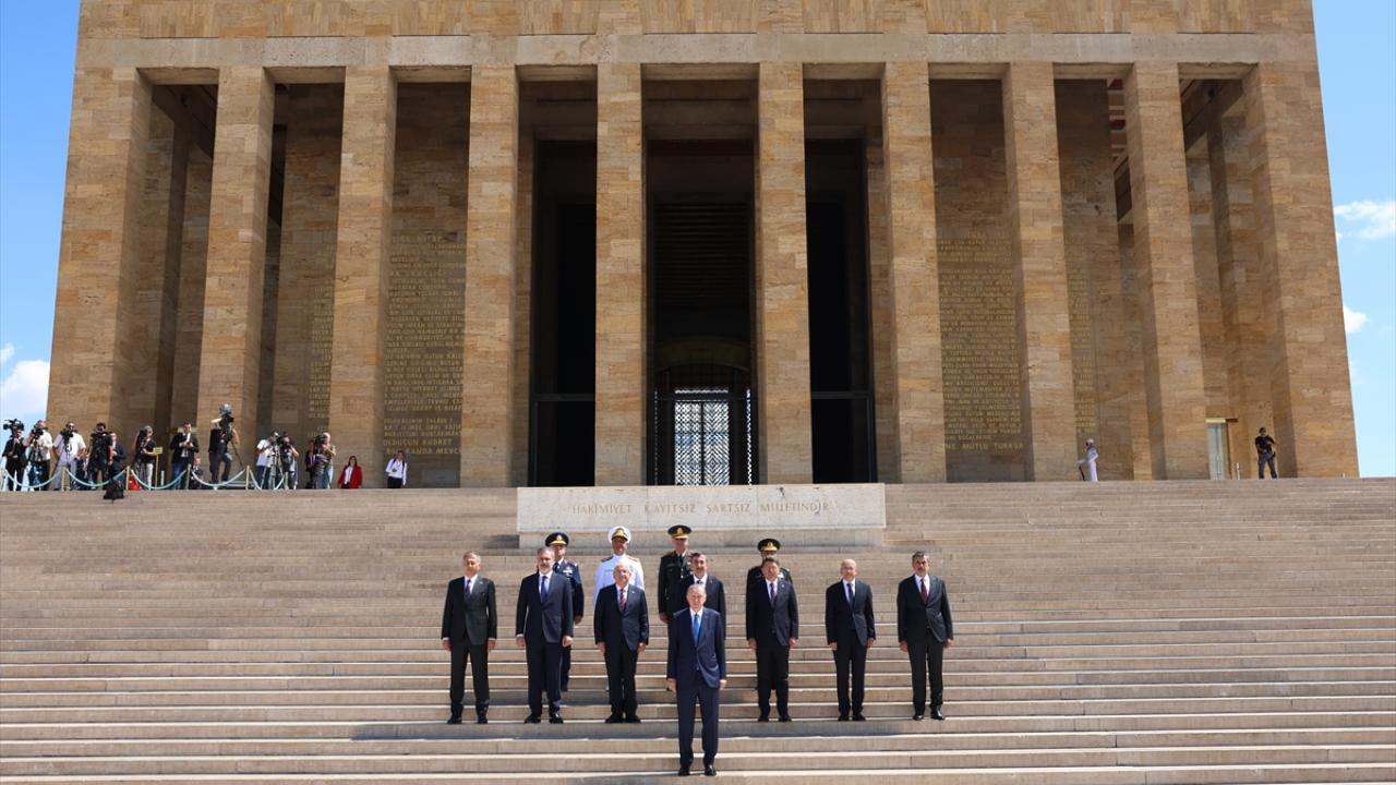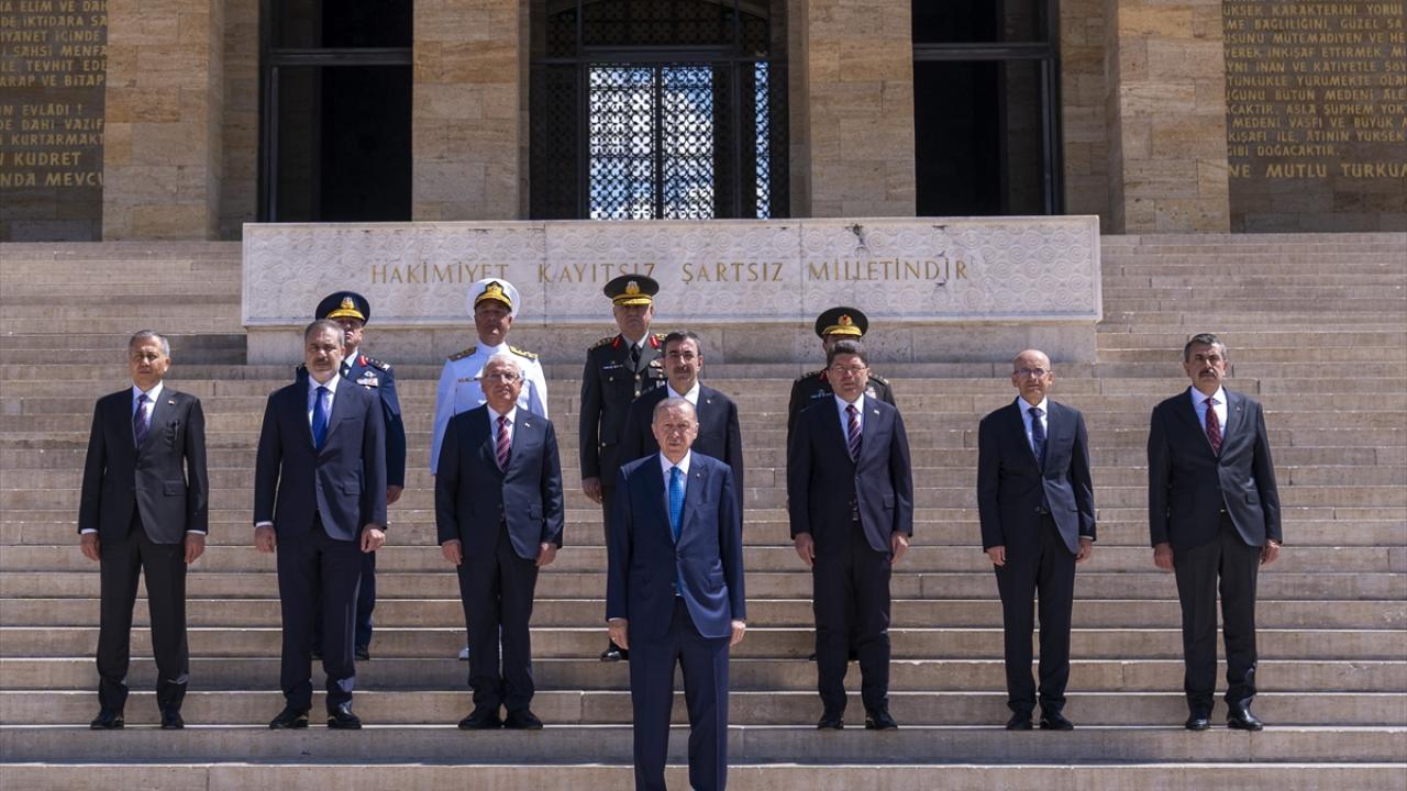 Cumhurbaşkanı Erdoğan ve YAŞ üyeleri, Cumhurbaşkanlığı Külliyesi`ndeki toplantı öncesi Anıtkabir`e geldi.