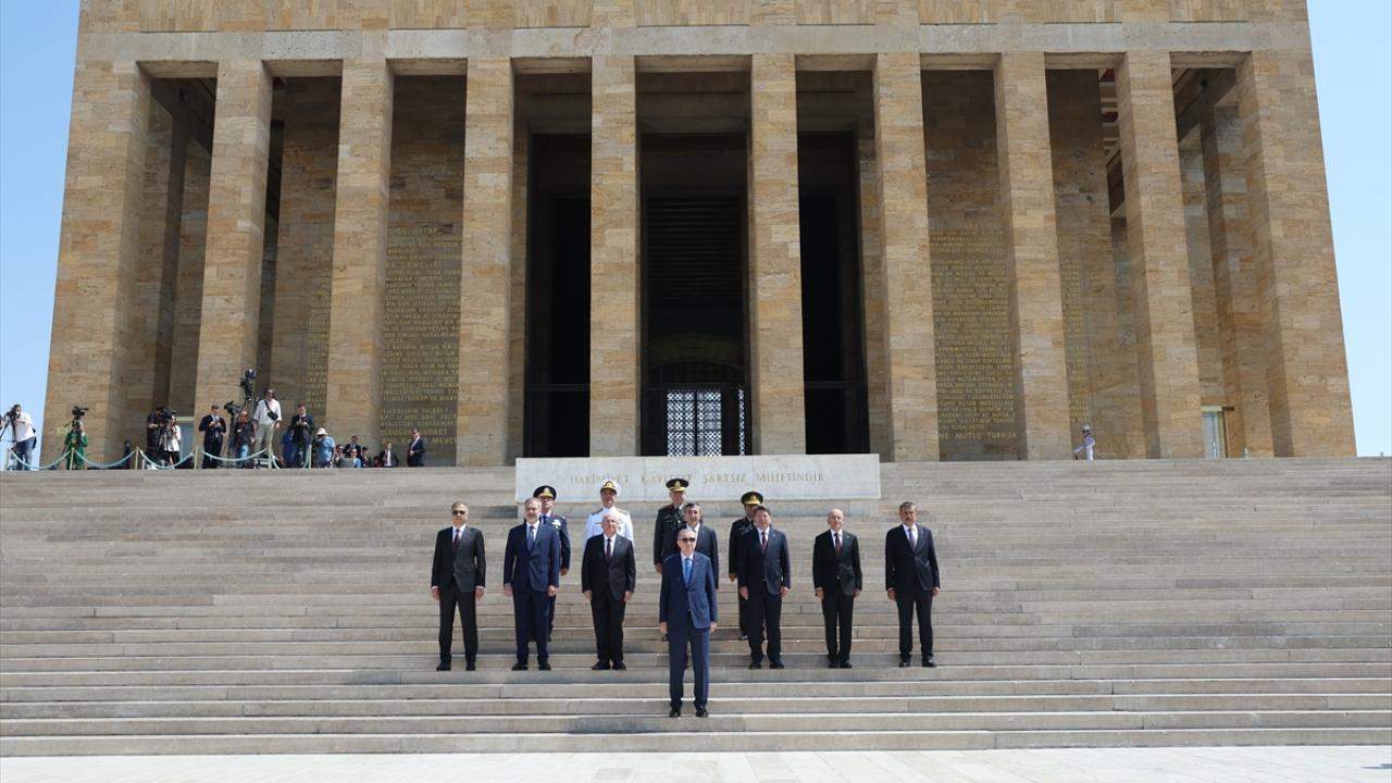 Cumhurbaşkanı Erdoğan ve YAŞ üyeleri, Cumhurbaşkanlığı Külliyesi`ndeki toplantı öncesi Anıtkabir`e geldi.
