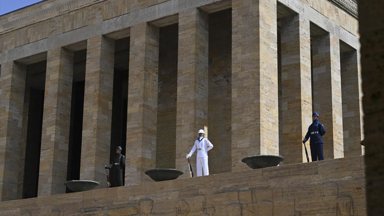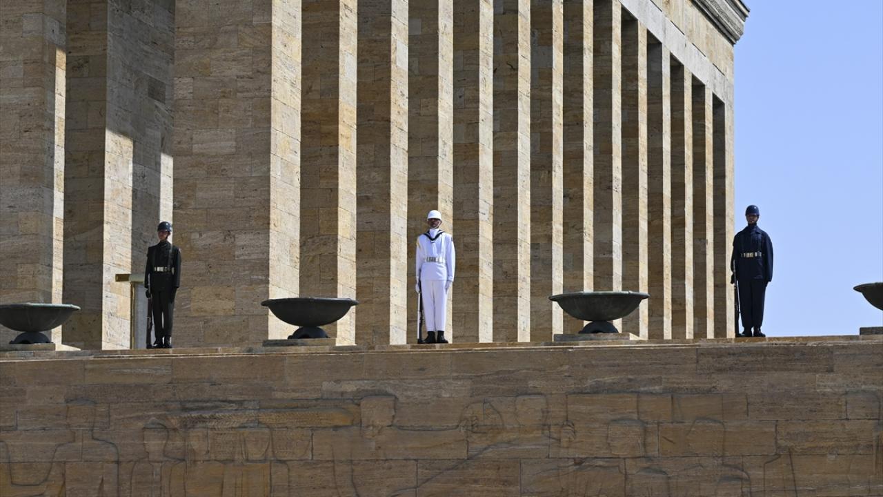 Cumhurbaşkanı Erdoğan`ın ay yıldız motifli çelengi Atatürk`ün mozolesine bırakmasının ardından saygı duruşunda bulunuldu, İstiklal Marşı okundu.