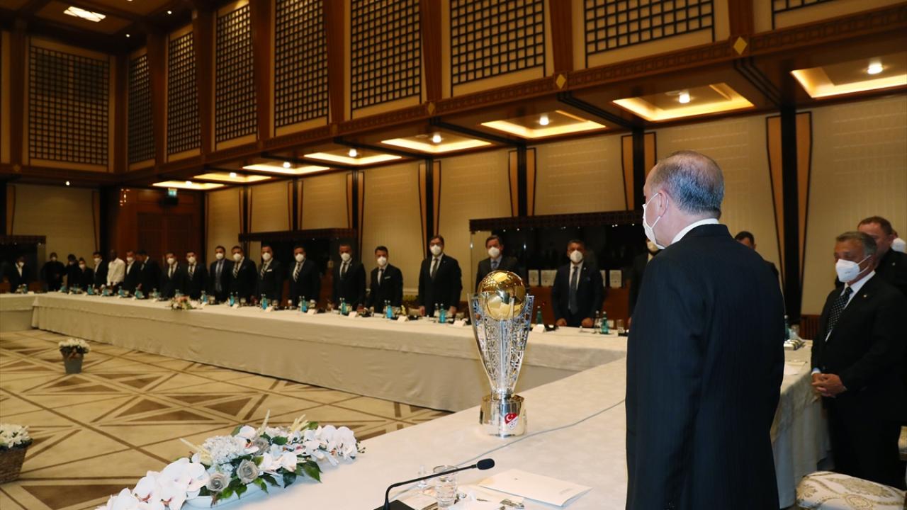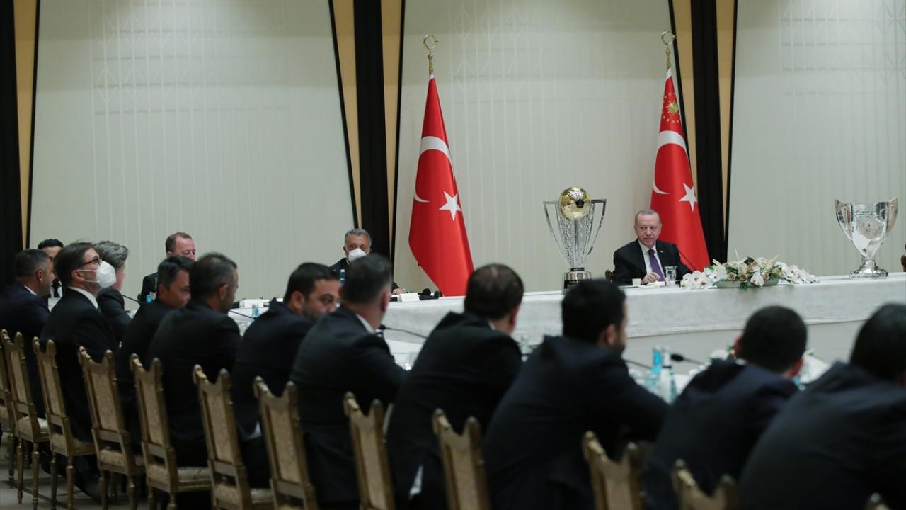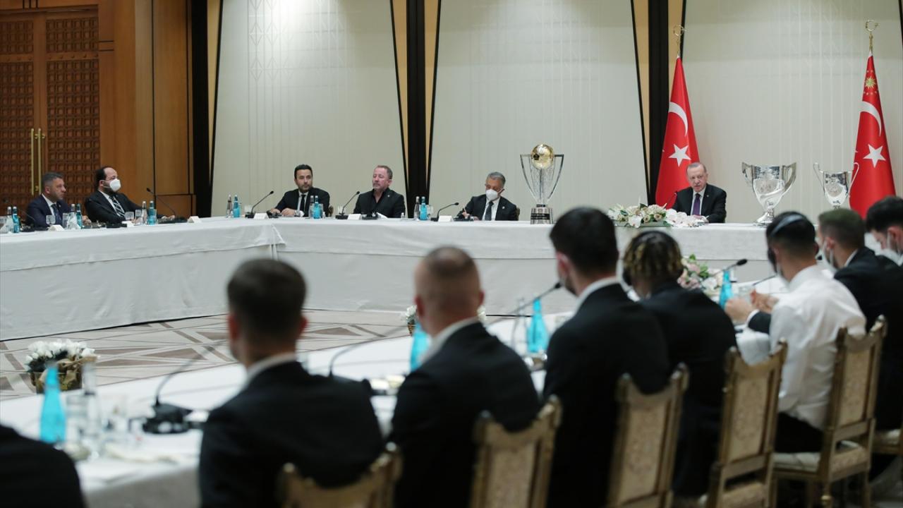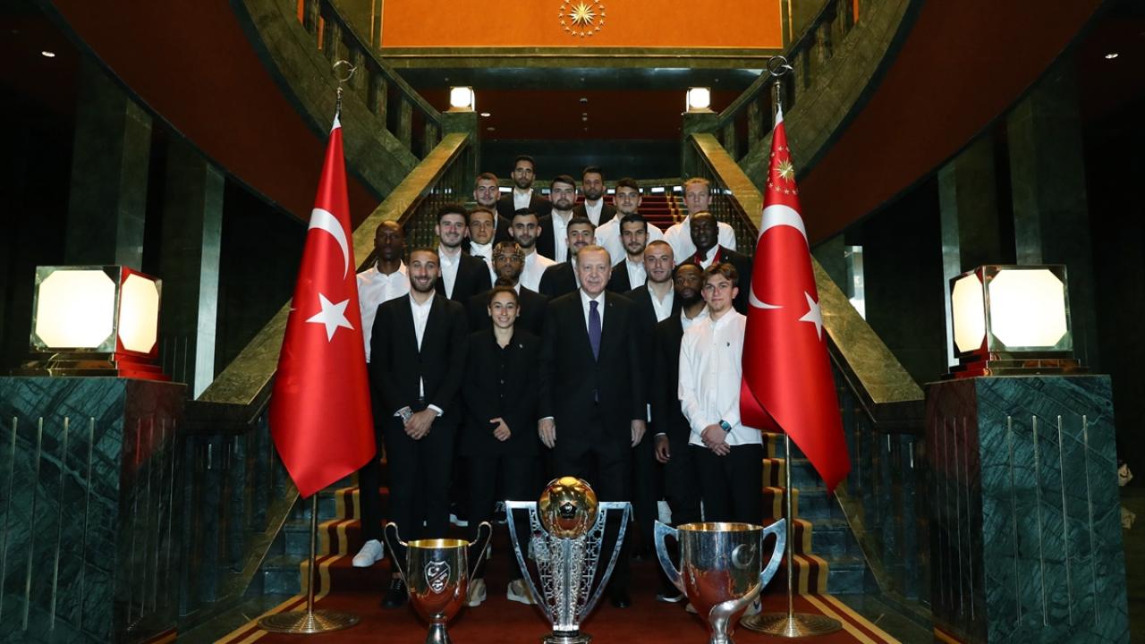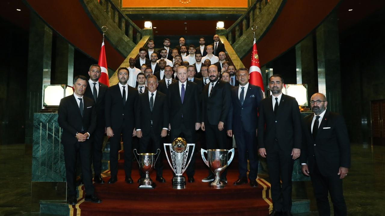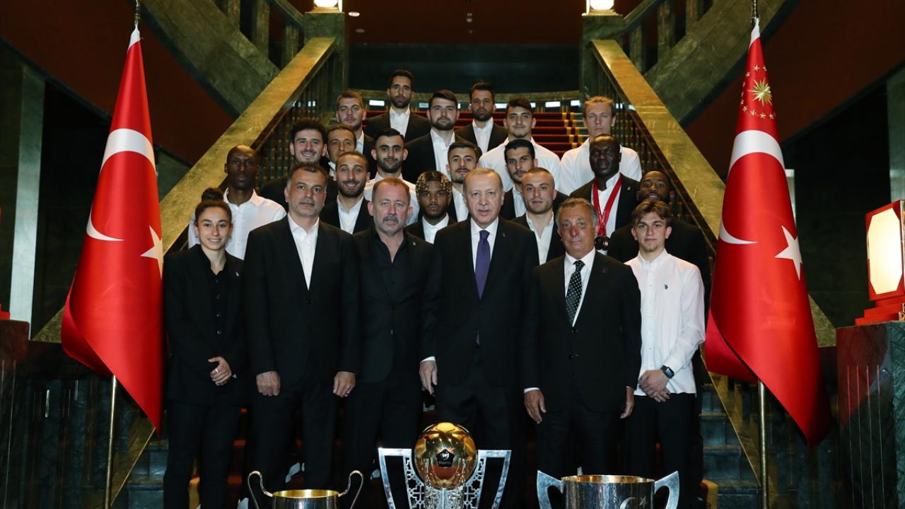 Cumhurbaşkanı Erdoğan, ziyaretin ardından Beşiktaş Kulübü Başkanı Ahmet Nur Çebi, teknik direktör Sergen Yalçın, futbolcular ve teknik heyet ile fotoğraf çektirdi.