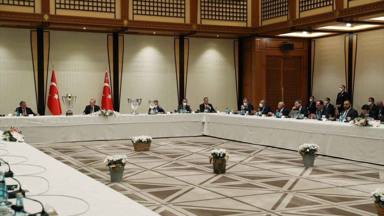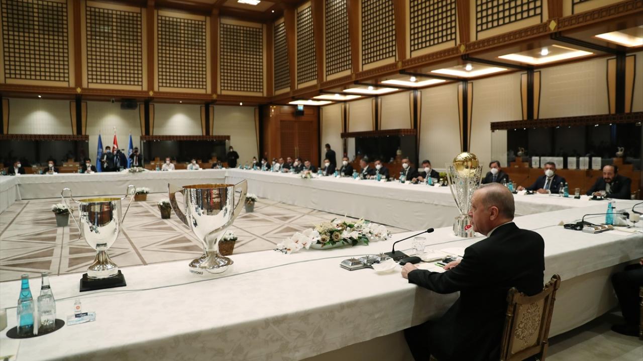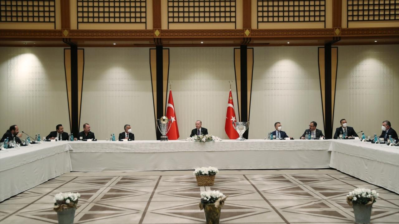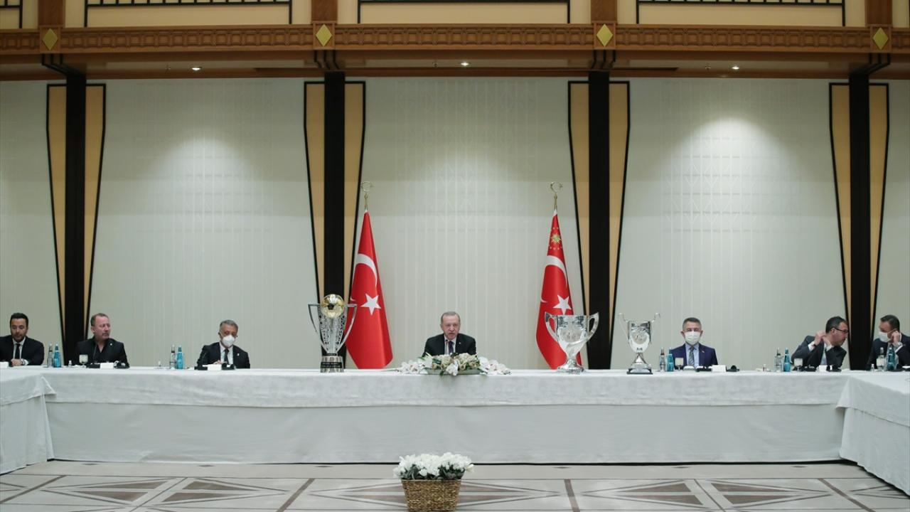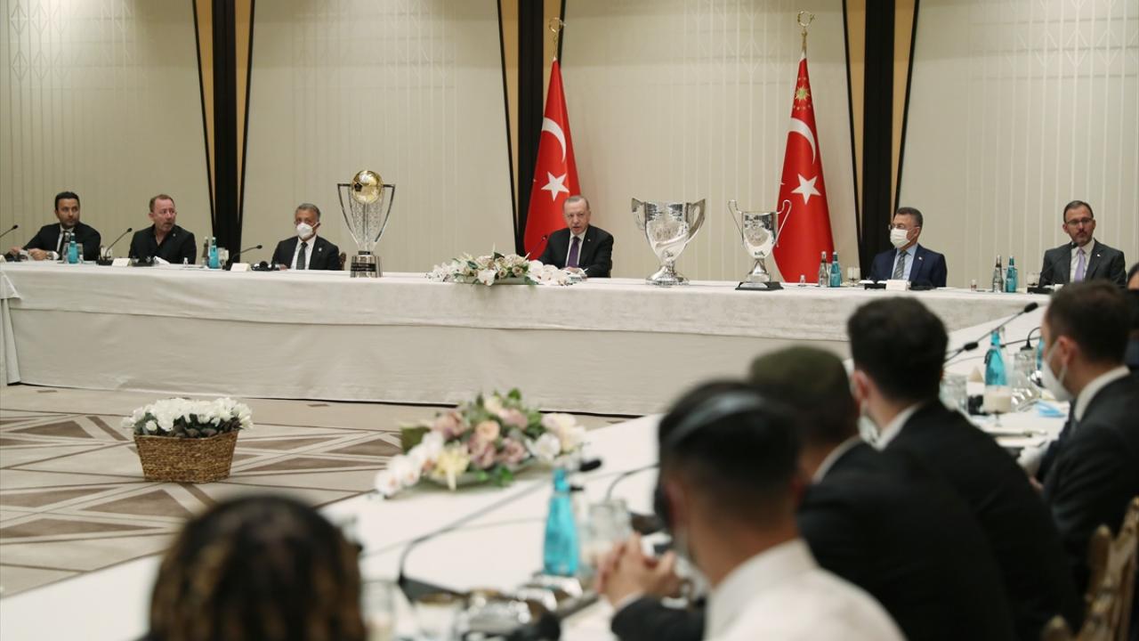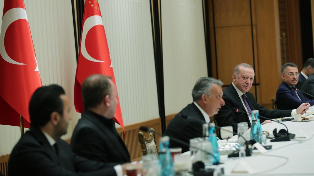 Cumhurbaşkanı Erdoğan, ziyaretin ardından Beşiktaş Kulübü Başkanı Ahmet Nur Çebi, teknik direktör Sergen Yalçın, futbolcular ve teknik heyet ile fotoğraf çektirdi.