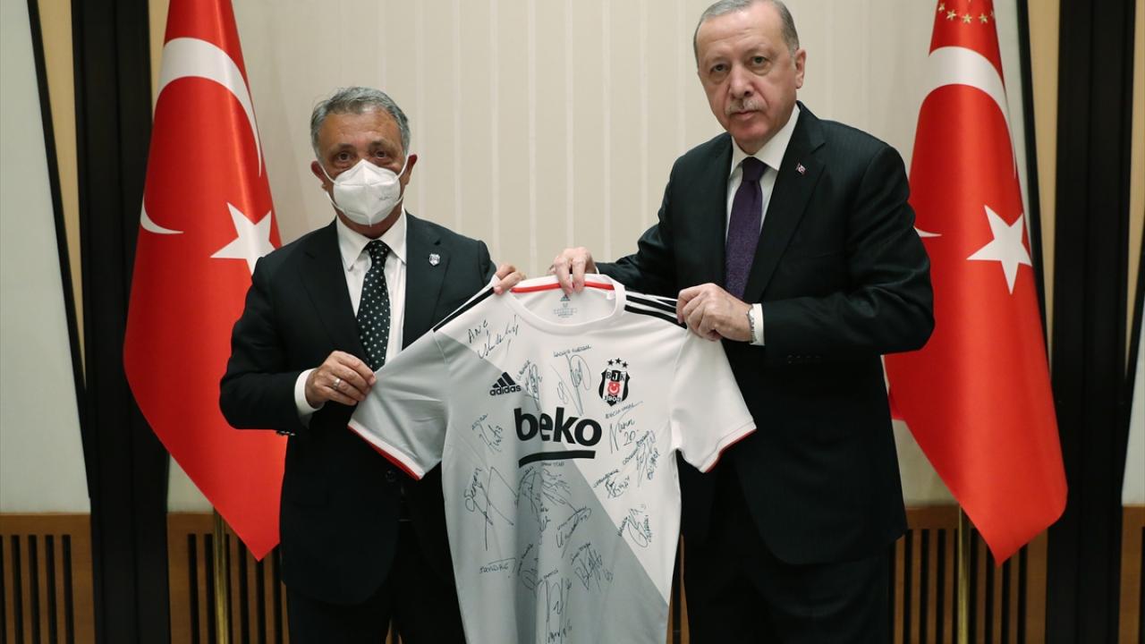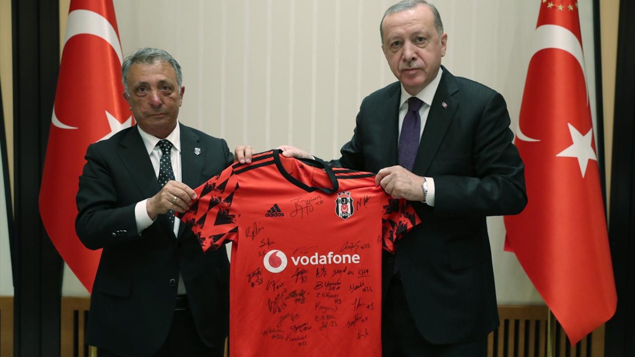 Kabulde Beşiktaş Kulübü Başkanı Ahmet Nur Çebi, Cumhurbaşkanı Erdoğan`a forma hediye etti.