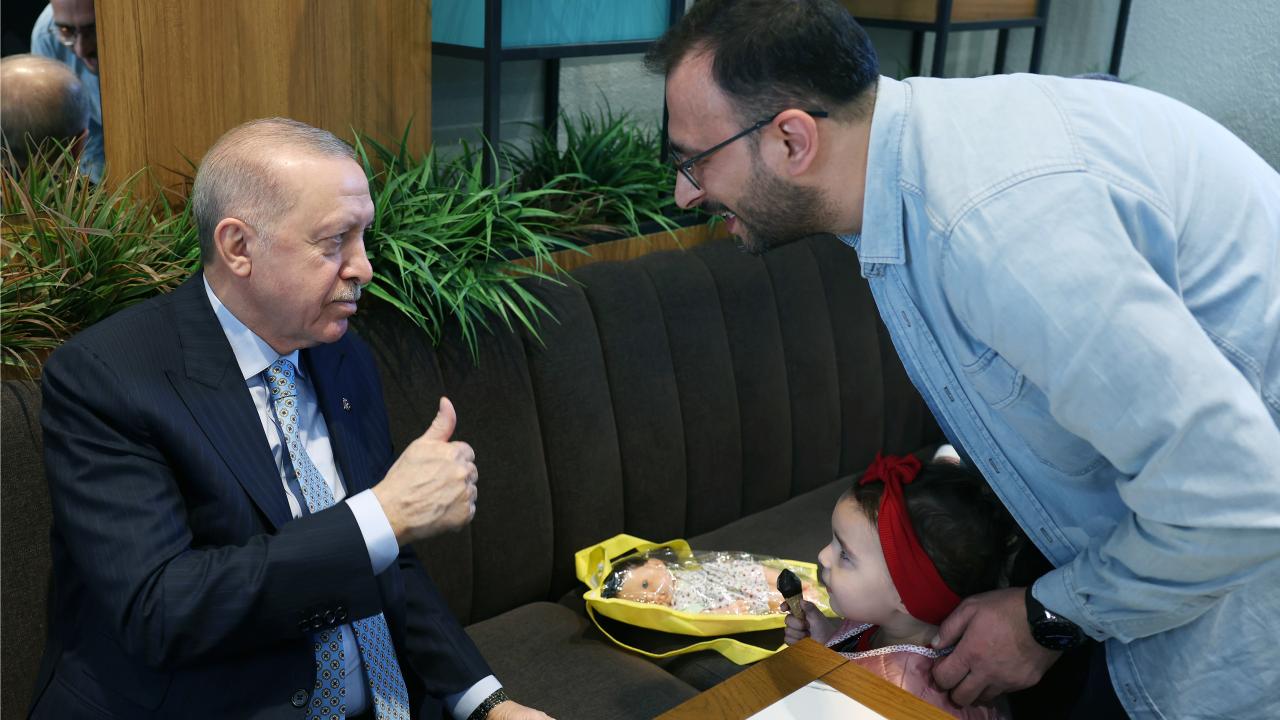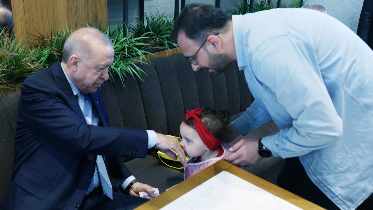 Erdoğan, burada tokalaştığı vatandaşlarla sohbet etti, elini öpen çocuklara harçlık dağıttı.
