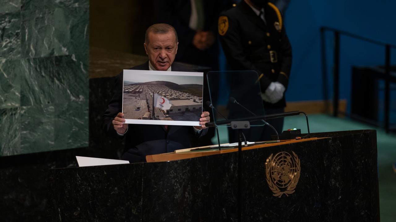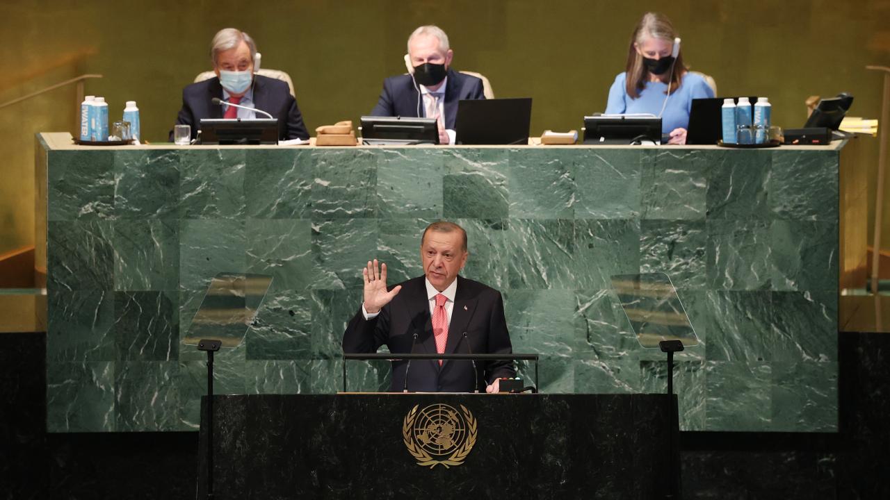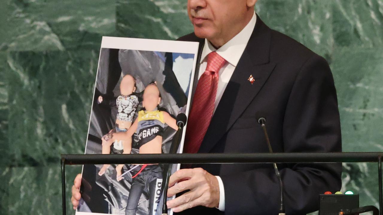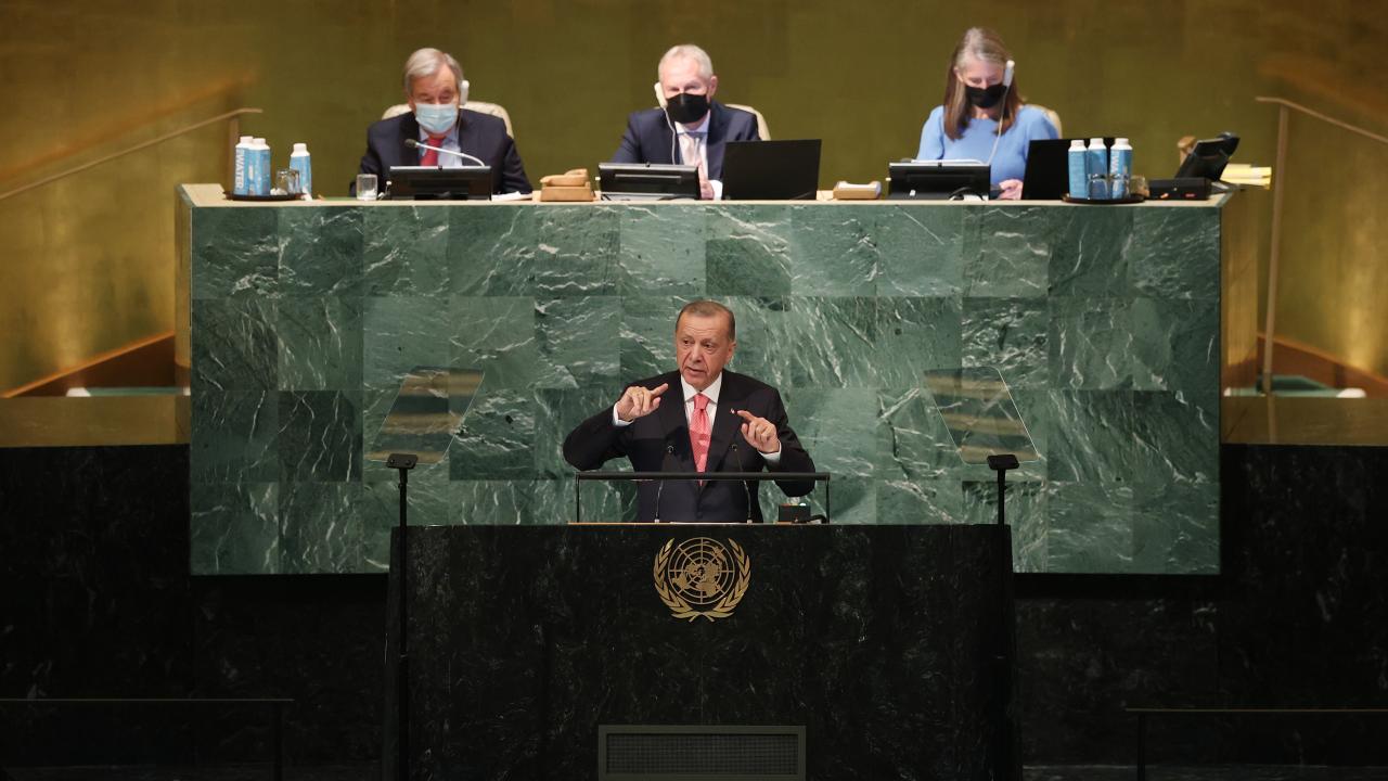 Birleşmiş Milletler 77. Genel Kurulu'nda dünya liderlerine seslenen Cumhurbaşkanı Erdoğan, tahıl koridorundan, Suriye'deki briket evlere, terörden, geçen hafta Yunan sahil güvenlik güçlerinin botlarını batırması sonucu vefat eden 9 aylık Asım ve ağabeyi gibi birçok konuya değindi.
