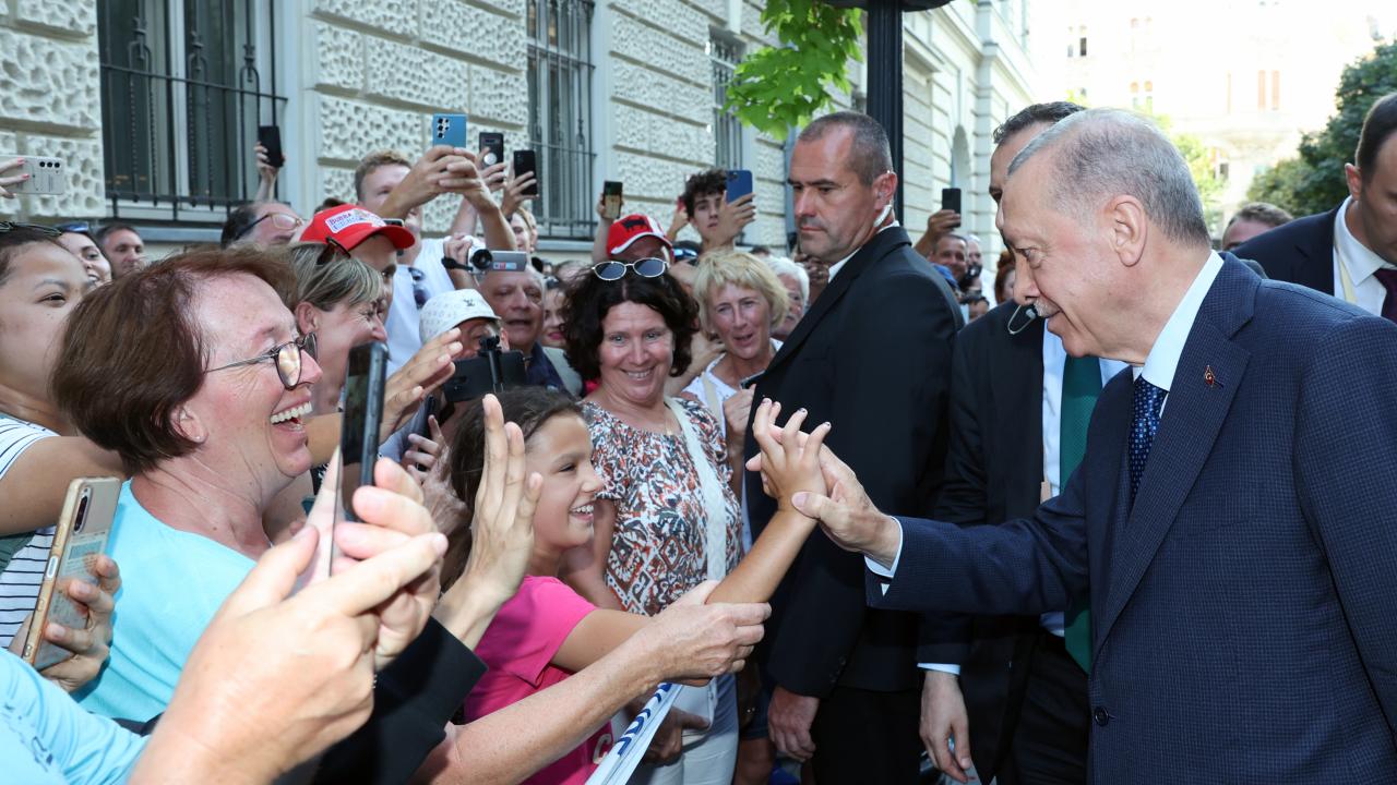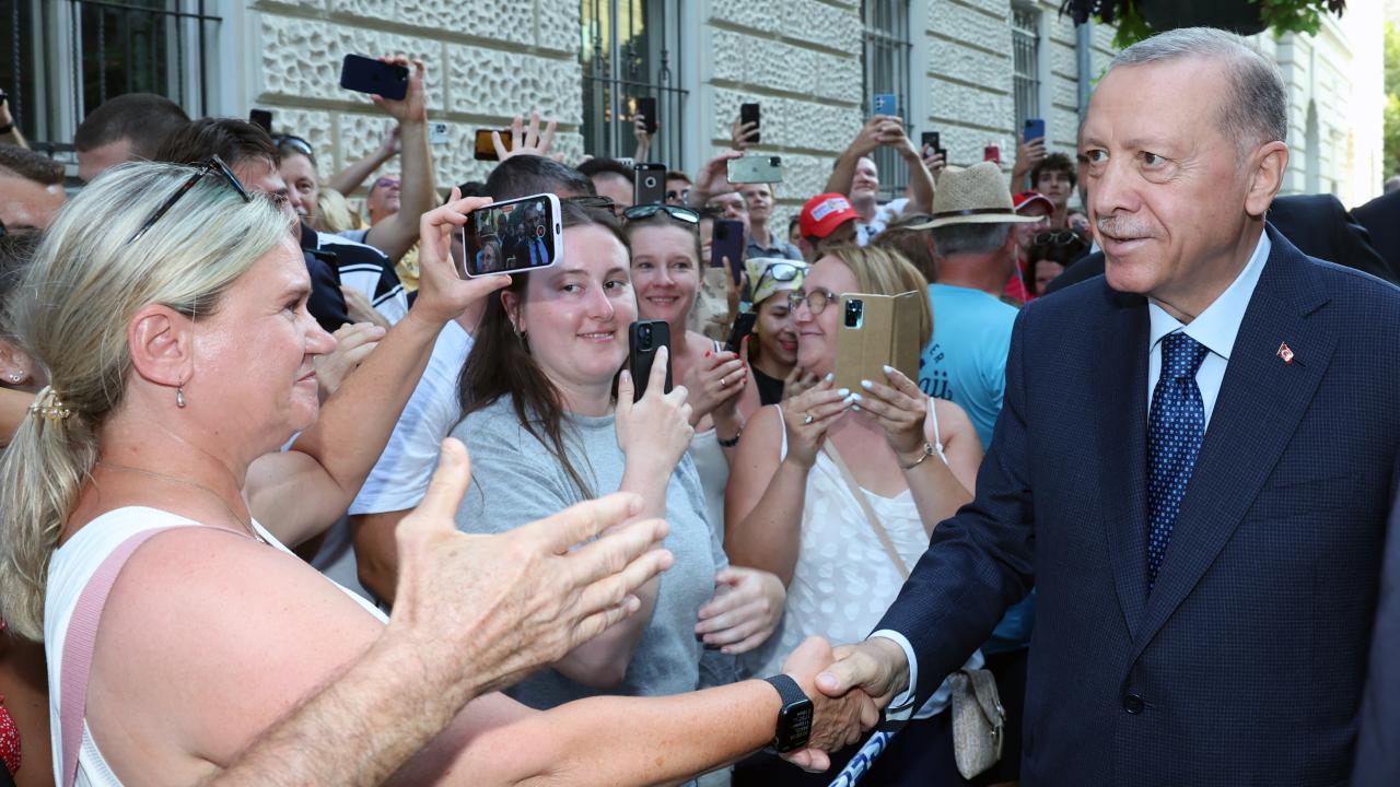 Cumhurbaşkanı Recep Tayyip Erdoğan, Macaristan Devleti'nin Kuruluş Günü kutlamaları dolayısıyla bulunduğu Budapeşte'de kendisine sevgi gösterisinde bulunan Macar vatandaşları selamladı.