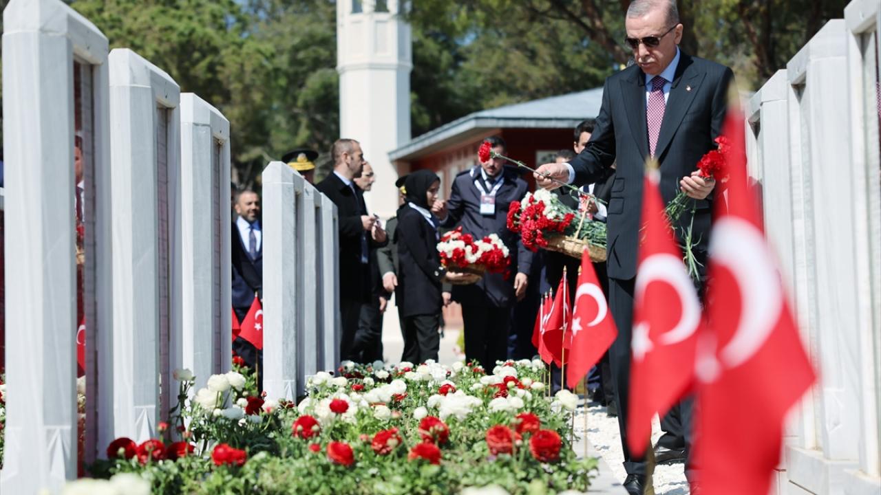 Cumhurbaşkanı Recep Tayyip Erdoğan, Şehitler Abidesi`nde 18 Mart Şehitleri Anma Günü ve Çanakkale Deniz Zaferi`nin 109. Yıl Dönümü Töreni`ne katıldı.