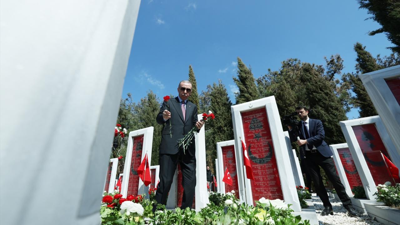 Cumhurbaşkanı Erdoğan`ın konuşmasının ardından Kur`an-ı Kerim Tilaveti ile dua edildi. Daha sonra Şehitlik Defteri`ni imzalayan Cumhurbaşkanı Erdoğan, şehitliklere karanfil bıraktı.