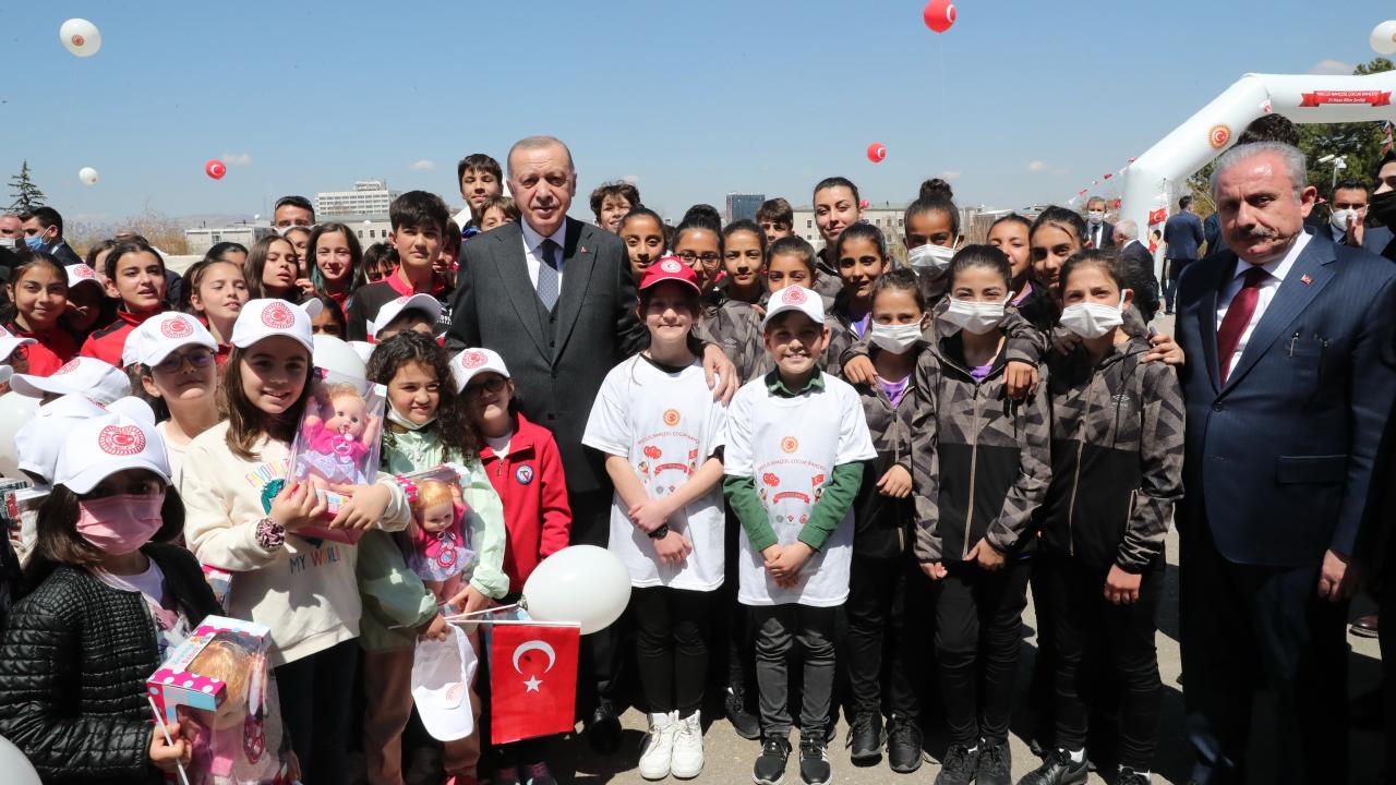 Cumhurbaşkanı Erdoğan, partisinin grup toplantısı sonrası TBMM bahçesinde kurulan stantları gezen çocuklarla bir araya geldi.