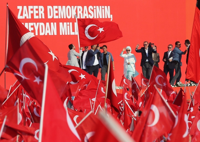 Cumhurbaşkanı Recep Tayyip Erdoğan, Cumhurbaşkanlığı himayesinde, İstanbul Valiliği ve Büyükşehir Belediyesi desteğiyle Yenikapı Miting Alanı'nda düzenlenen "Demokrasi ve Şehitler Mitingi"ne katıldı. Cumhurbaşkanı Erdoğan ve eşi Emine Erdoğan, vatandaşları selamladı.