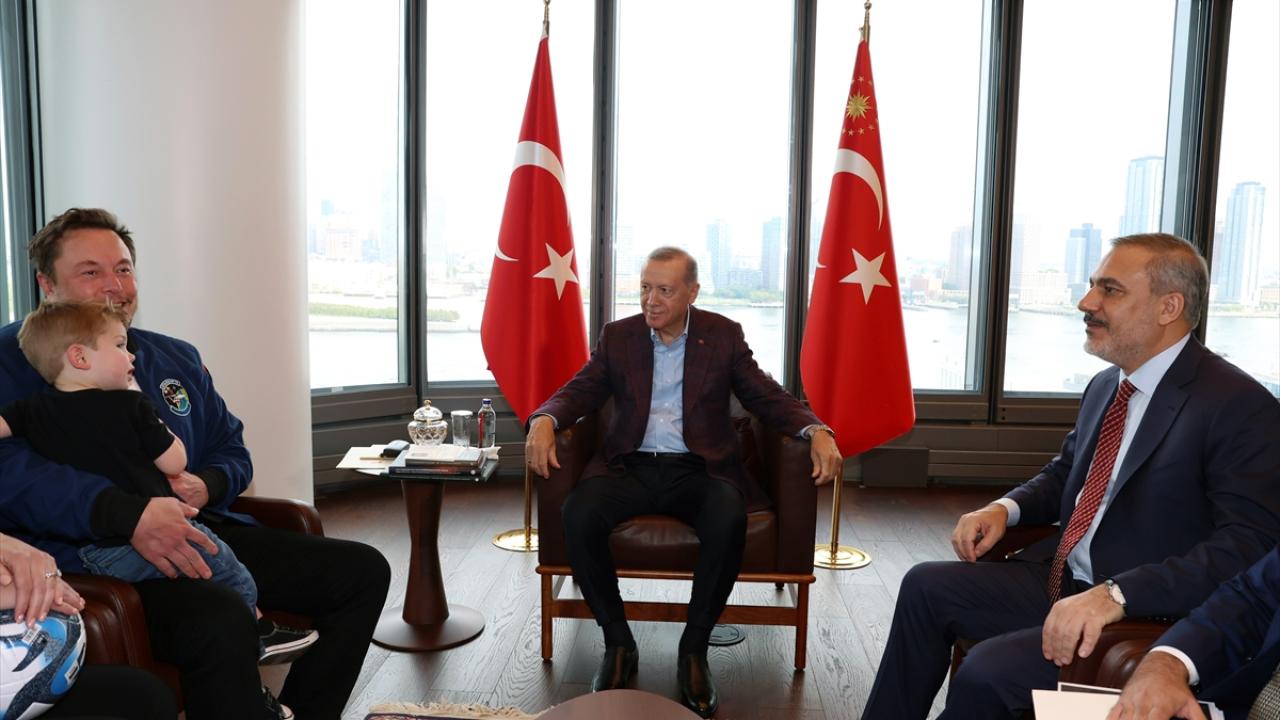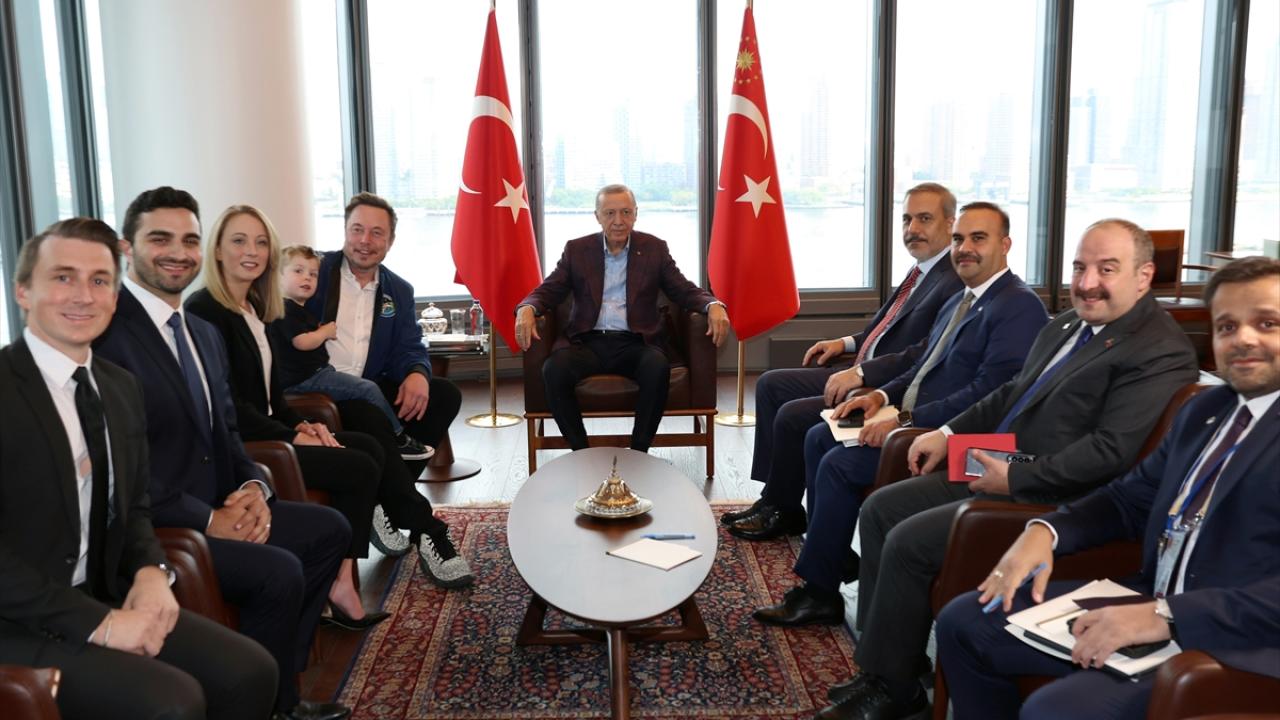 Cumhurbaşkanı Erdoğan, New York’ta Türkevi’nde Tesla ve SpaceX'in kurucusu Elon Musk’ı kabul etti. Erdoğan, Türkiye'nin uzay programı kapsamında atılacak adımlarda SpaceX ile işbirliği imkanları doğabileceğini ifade etti, Musk'ı İzmir'deki Teknofest'e davet etti.