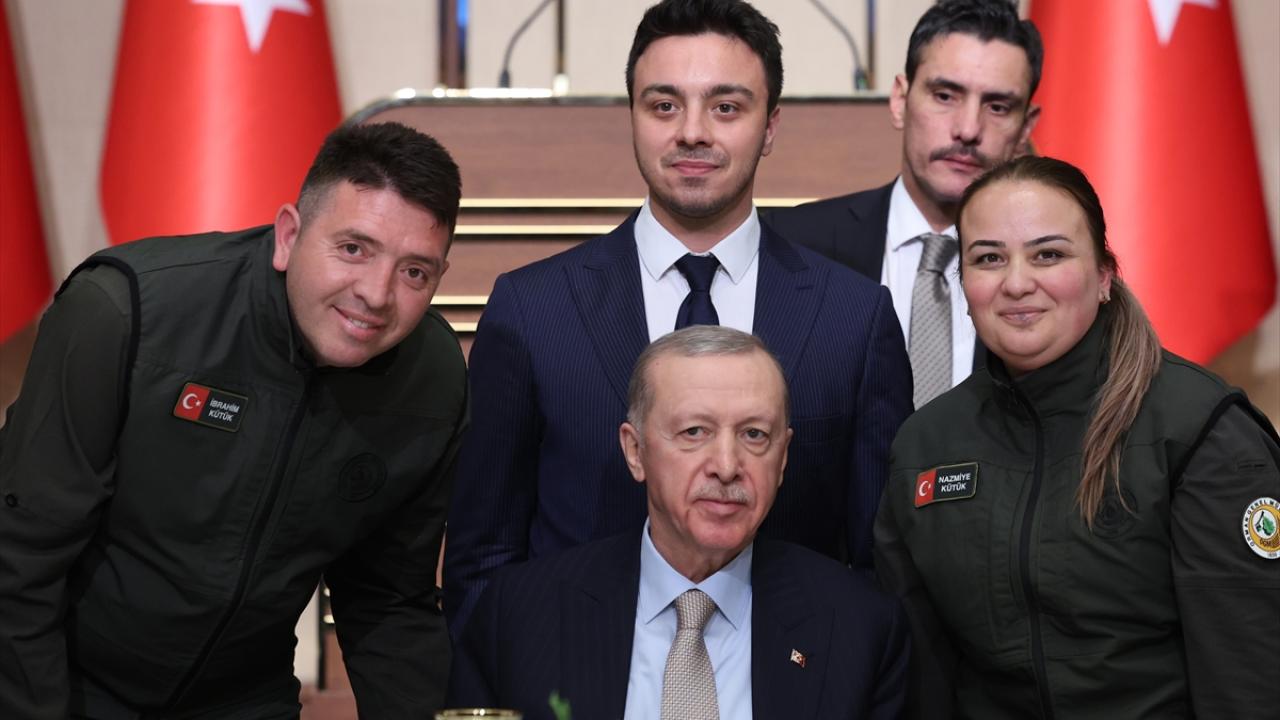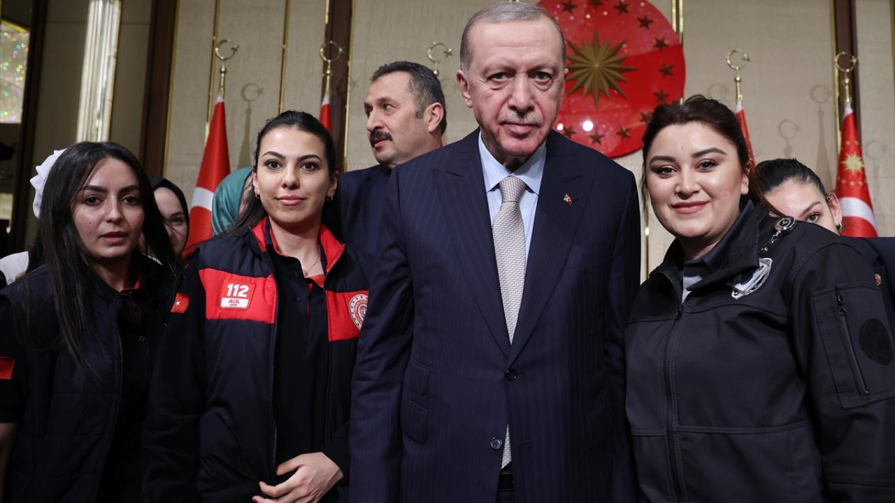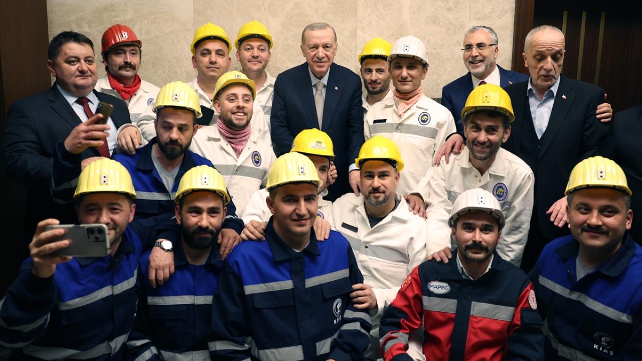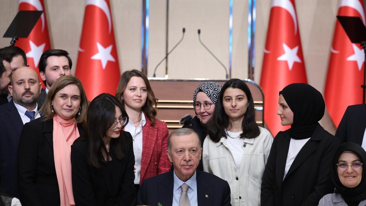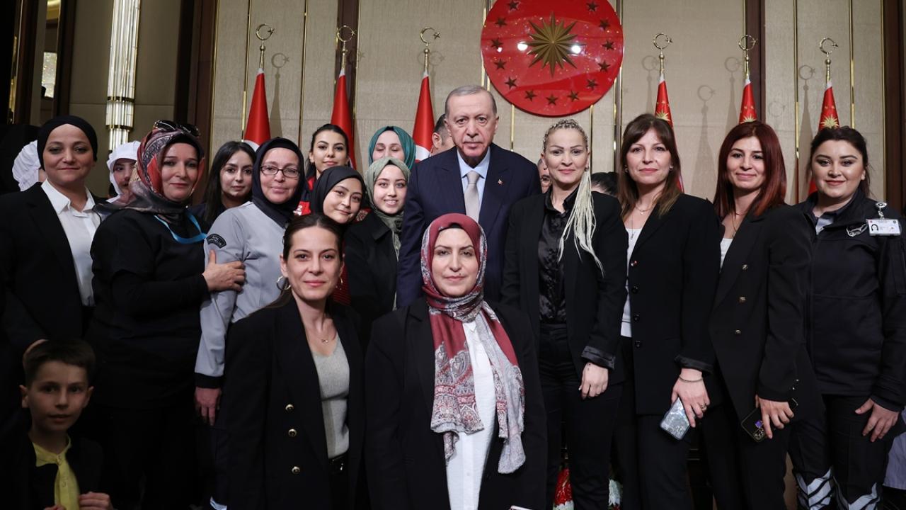 Erdoğan, burada katılımcılarla fotoğraf çektirdi.