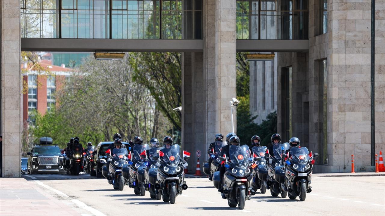Subianto`nun makam aracına kaldığı otelden Cumhurbaşkanlığı Külliyesi`ne gelişine kadar 18 motosikletten oluşan koruma ekibi refakat etti.