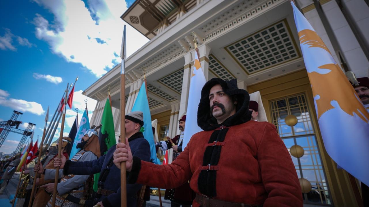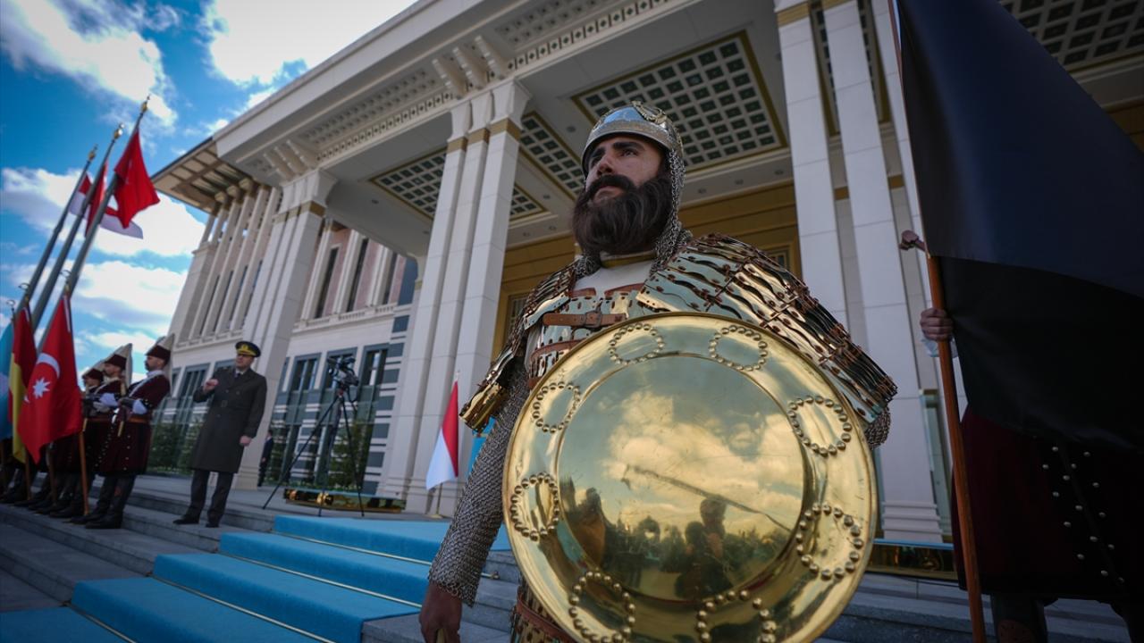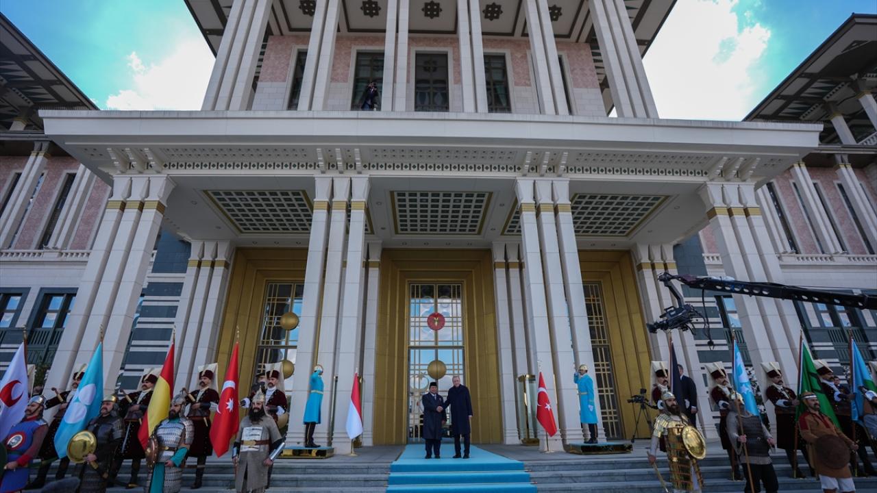 Atlı birlikler, konuk Cumhurbaşkanının makam aracını Cumhurbaşkanlığı Külliyesi önündeki caddede karşılayıp, araca protokol kapısına kadar eşlik etti.