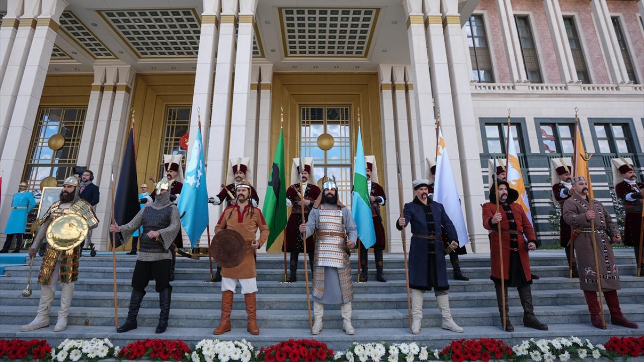 Törende, tarihte kurulan 16 Türk devletini temsil eden bayraklar ve askerlere de yer verildi, 21 pare top atışı yapıldı.