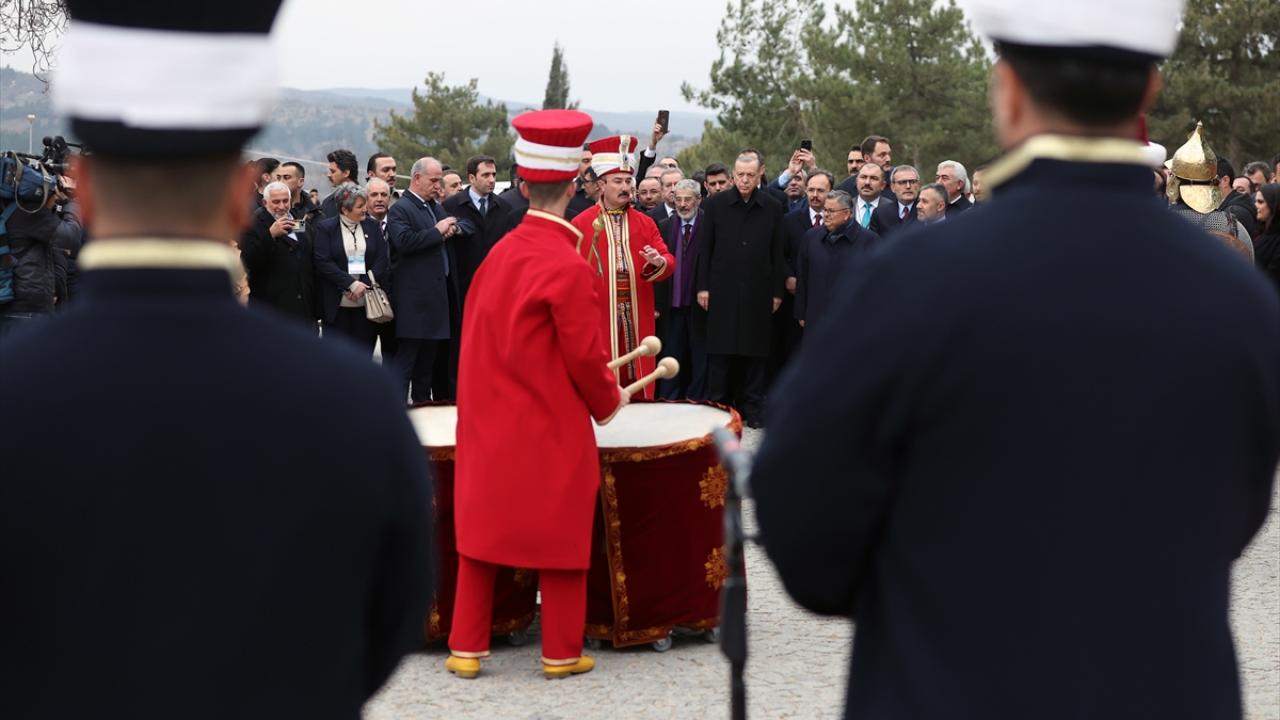 Burada, Ertuğrul Gazi Türbesi Saygı Nöbeti timindeki alpları selamlayan Erdoğan, Jandarma Genel Komutanlığı Mehteran Takımı`nın gösterisini de izledi.