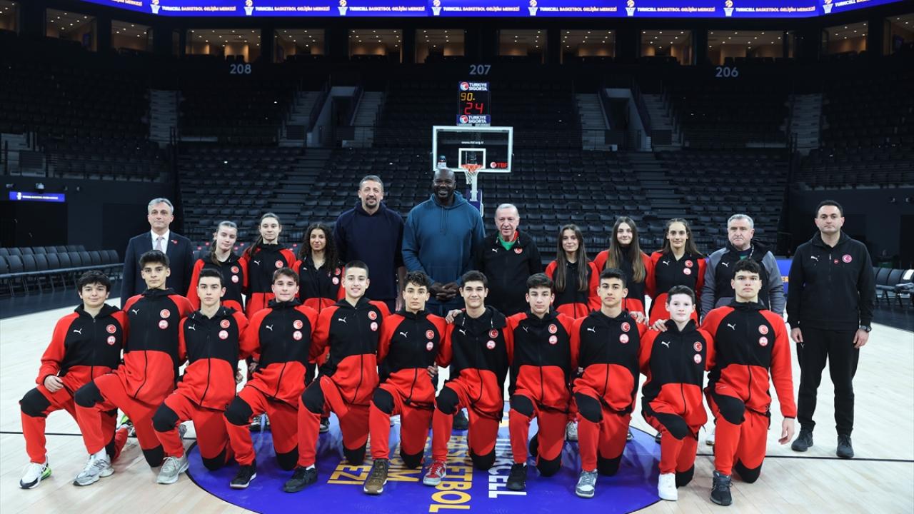 Erdoğan ve O`Neal, genç sporcularla fotoğraf çektirdi.