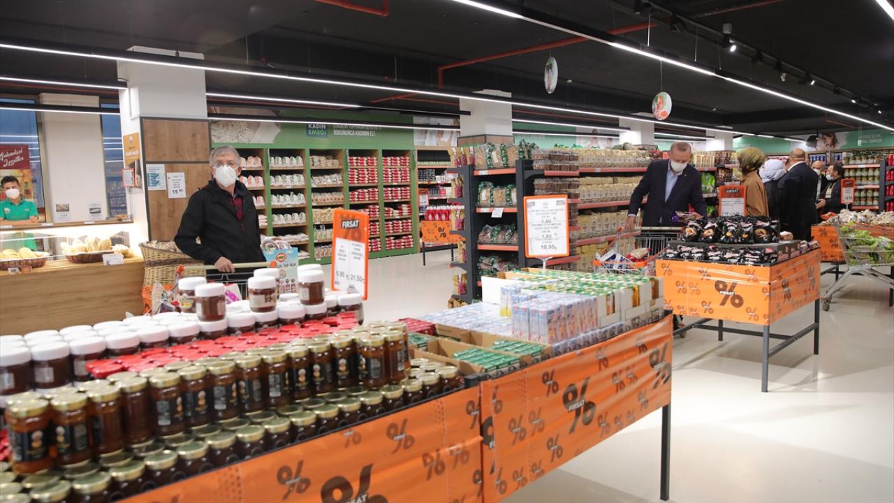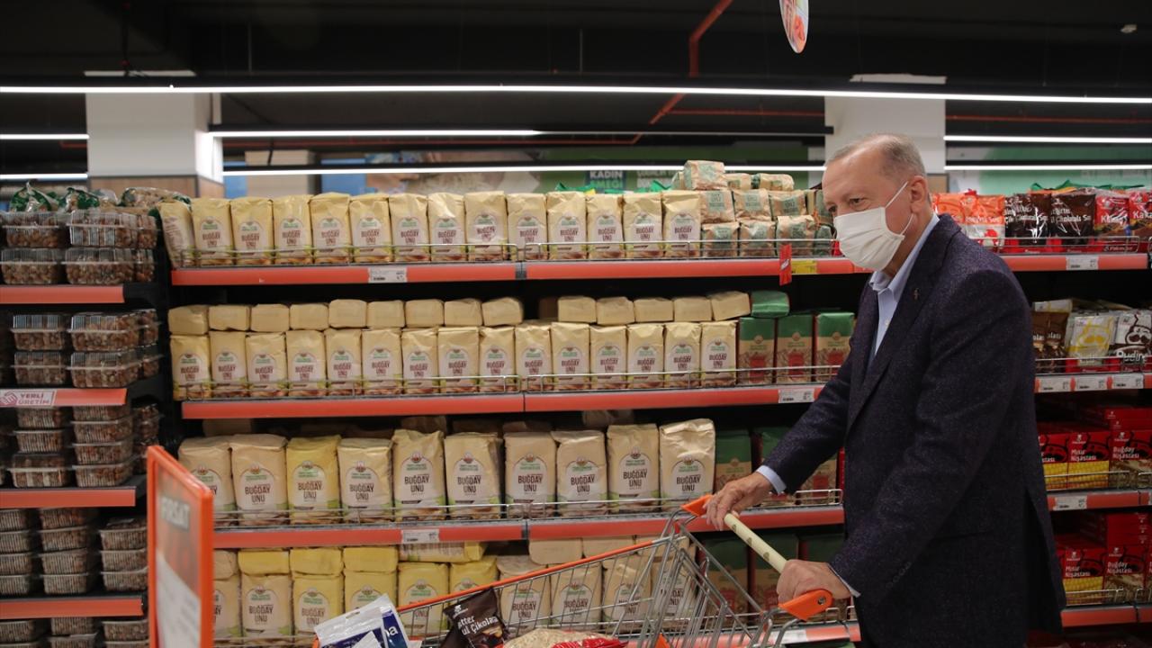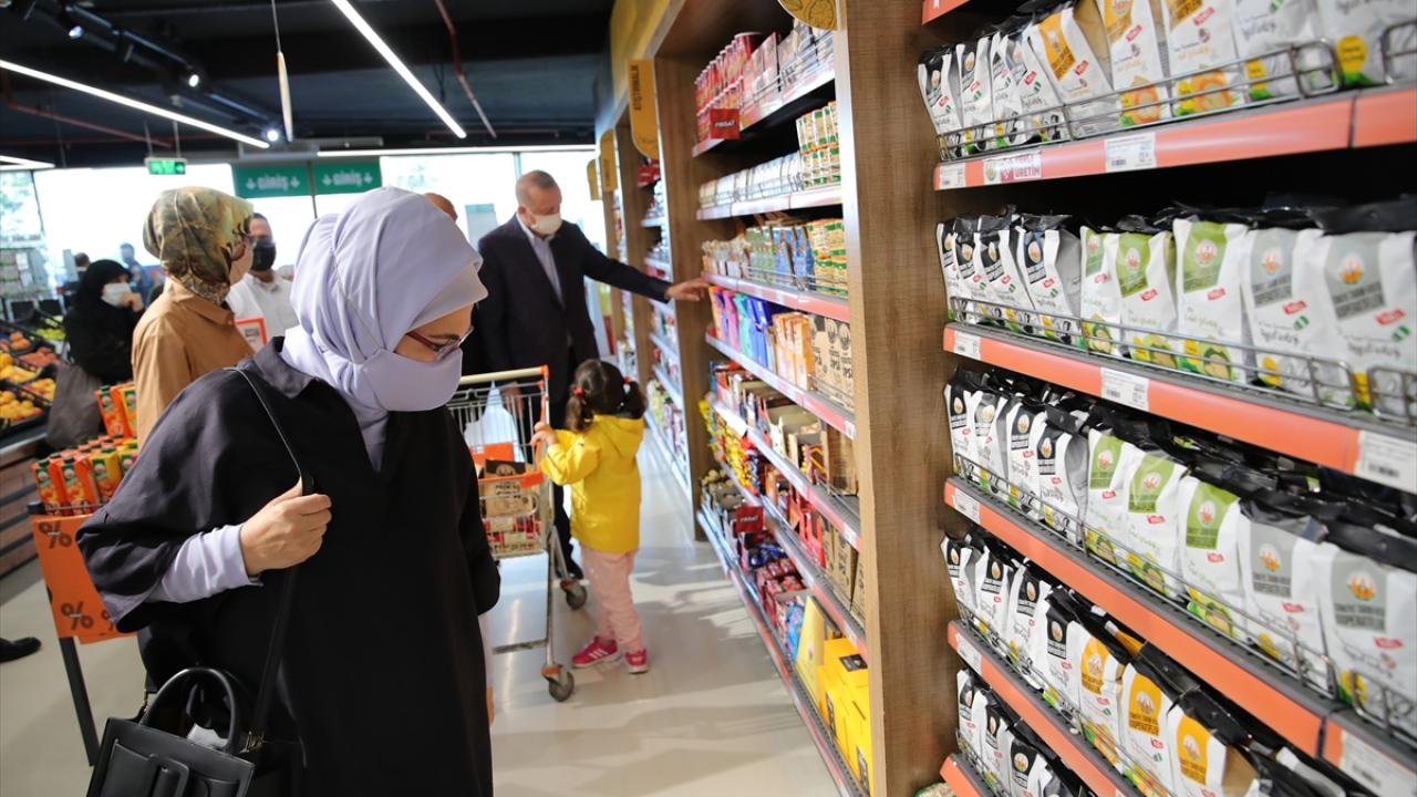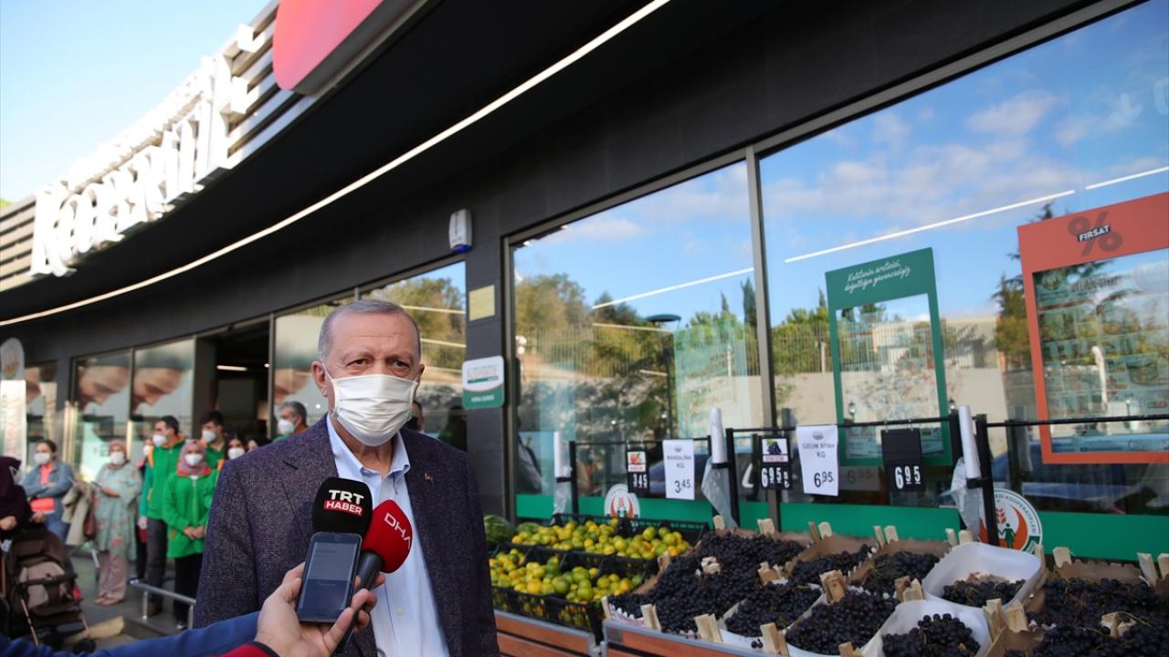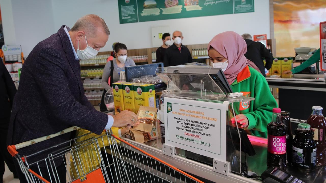 Cumhurbaşkanı Erdoğan, alışverişinin ardından, "Tarım Kredi Kooperatiflerimizin buradaki gördüğünüz gibi market, çeşitli ürünler noktasında, kalite noktasında, fiyatlar noktasında gayet uygun." dedi.