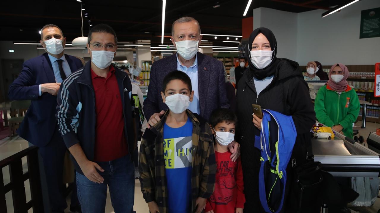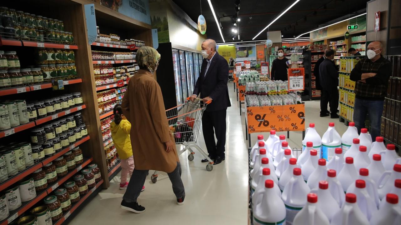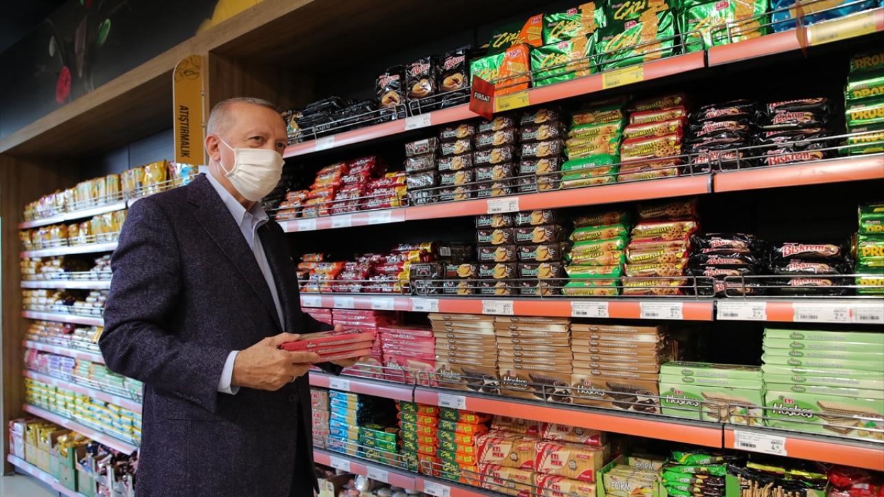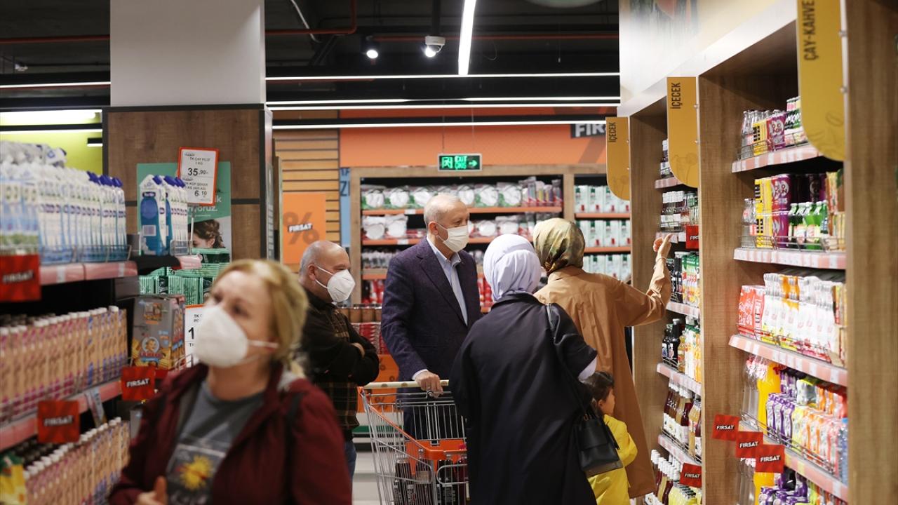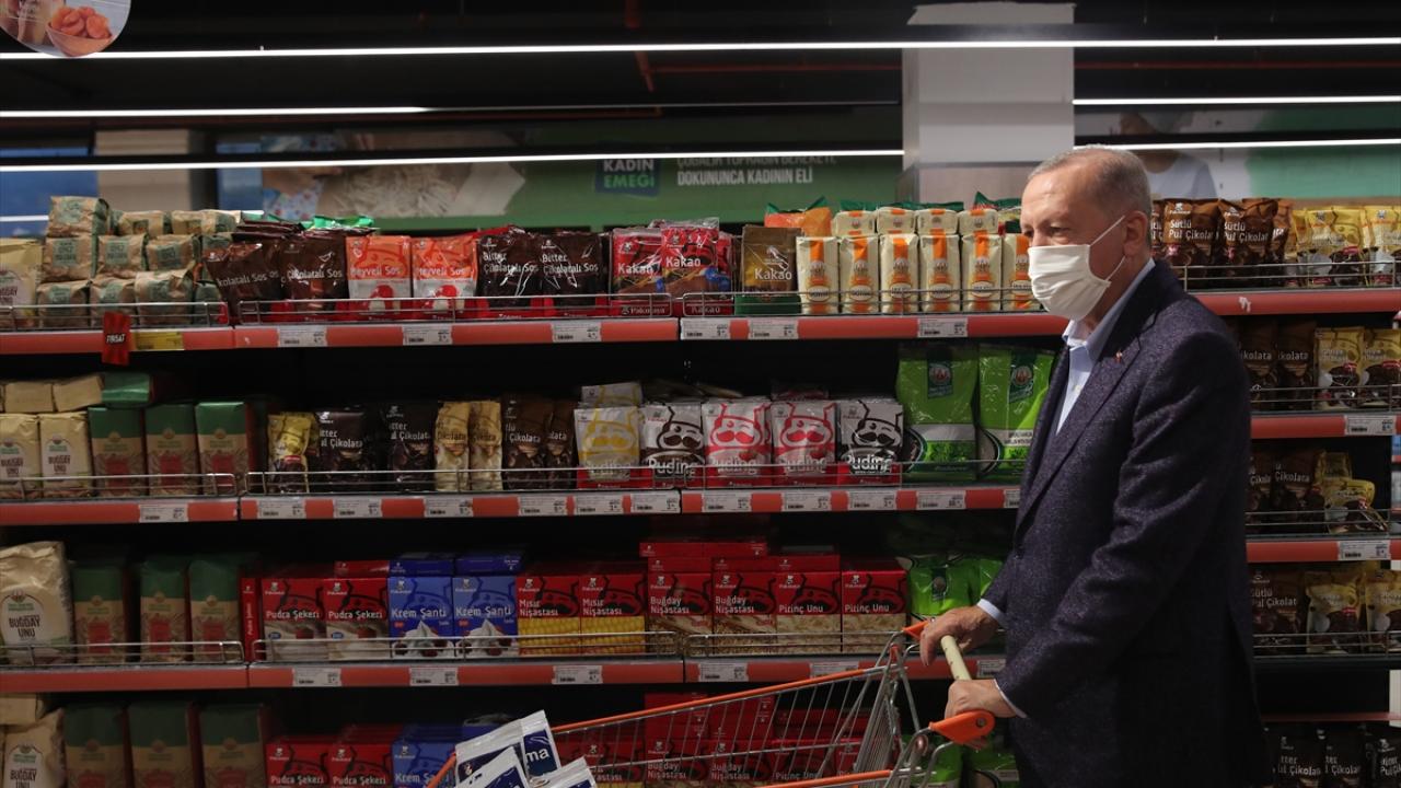 Cumhurbaşkanı Erdoğan, alışverişinin ardından, "Tarım Kredi Kooperatiflerimizin buradaki gördüğünüz gibi market, çeşitli ürünler noktasında, kalite noktasında, fiyatlar noktasında gayet uygun." dedi.