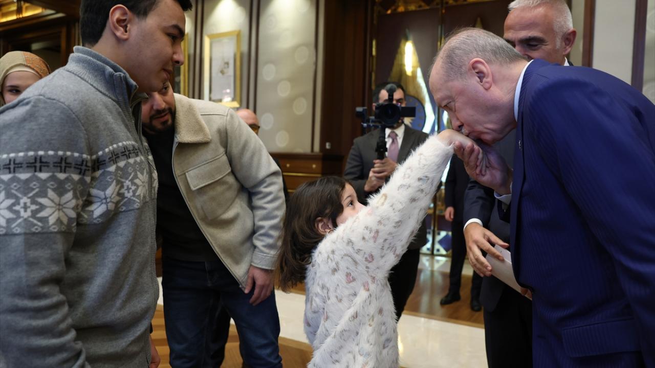 Cumhurbaşkanı Recep Tayyip Erdoğan, Gazze'de İsrail ateşi altında bir araçta mahsur kalarak hayatını kaybeden 6 yaşındaki Filistinli Hind Rajab'ın aile fertlerini ve akrabalarını Cumhurbaşkanlığı Külliyesi'nde kabul etti.