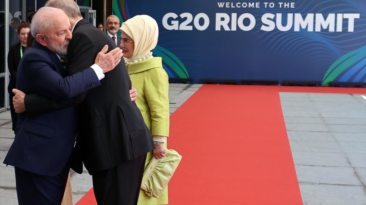 Zirvenin düzenlendiği Modern Sanat Müzesi`ne eşi Emine Erdoğan ile gelen Cumhurbaşkanı Erdoğan, G20`ye ev sahipliği yapan Brezilya Devlet Başkanı Lula da Silva tarafından karşılandı. Lula da Silva ve Erdoğan, tokalaşarak hatıra fotoğrafı çektirdi, sohbet etti.