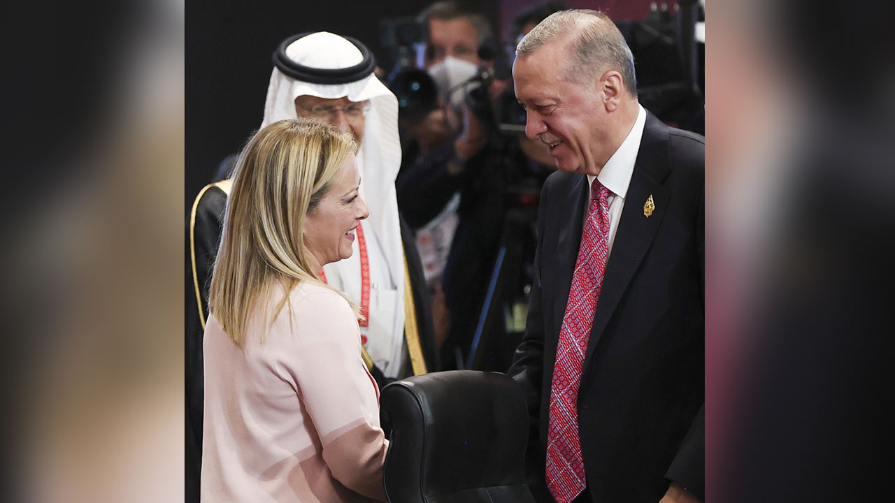 Erdoğan, İtalya Başbakanı Giorgia Meloni ile sohbet etti.