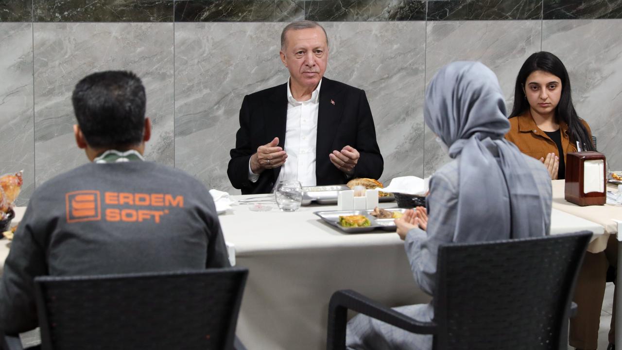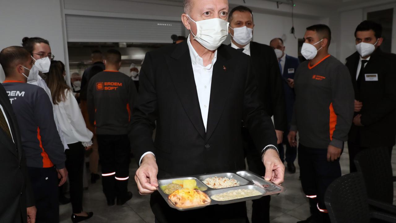 Asgari ücretin 4 bin 250 TL`ye çıkarıldığını hatırlatan Erdoğan, "Eleman arıyorum, bulamıyorum deniliyor. İş arayana ekmek var ama yan gelip yatarak para istersen o yok. İşçilerimizin alın terinin karşılığını verecek ücret politikasıyla destekliyoruz" dedi.