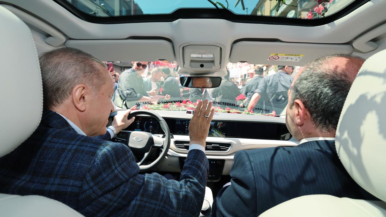 Cumhurbaşkanı Recep Tayyip Erdoğan, Bursa Gemlik'teki SIRO Batarya Geliştirme ve Üretim Kampüsü Temel Atma Töreni'ne yerli otomobil Togg ile gitti. Sanayi ve Teknoloji Bakanı Mustafa Varank da Erdoğan'a eşlik etti. Vatandaşlar otomobili karanfil yağmuruna tuttu.