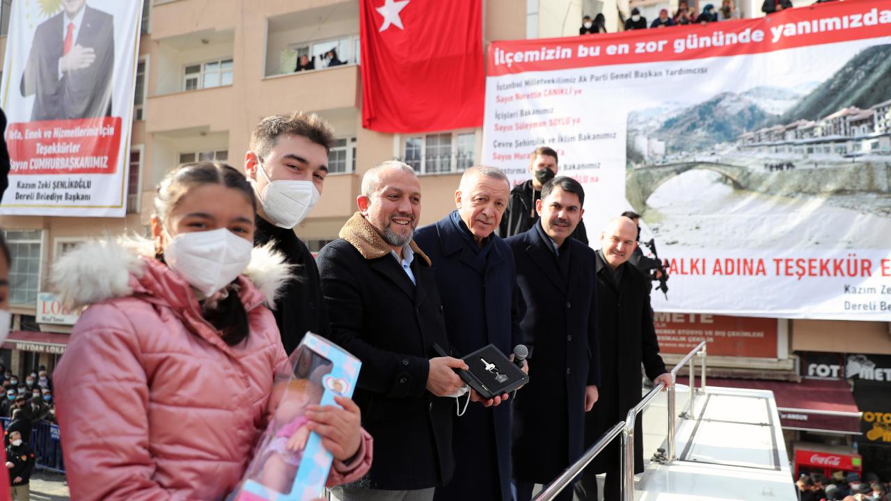 Muğla, Antalya`da yaşadık. Bu yıl bizim için felaket yılı oldu. Yılmadık, usanmadık ve tüm bu felaketlerin olduğu yerlerde Bakanlıklarımız kurumlarımızla beraber gece gündüz demeden çalıştık. Bu yıkılan binalarımızdan alt yapılara kadar yeniden ayağa kaldırdık. Hala da devam ediyoruz. İşte bugün burada bu mutluluğu yaşadık. Dereli`nin şimdi bu güzelliklerini görünce ben de mutlu oluyorum. Halkımıza verdiğimiz sözü tutmanın bahtiyarlığını yaşıyorum.