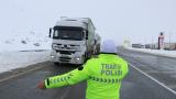 Trafik polisleri, çetin kış şartlarında güvenli seyahat için sürücülerin yanında