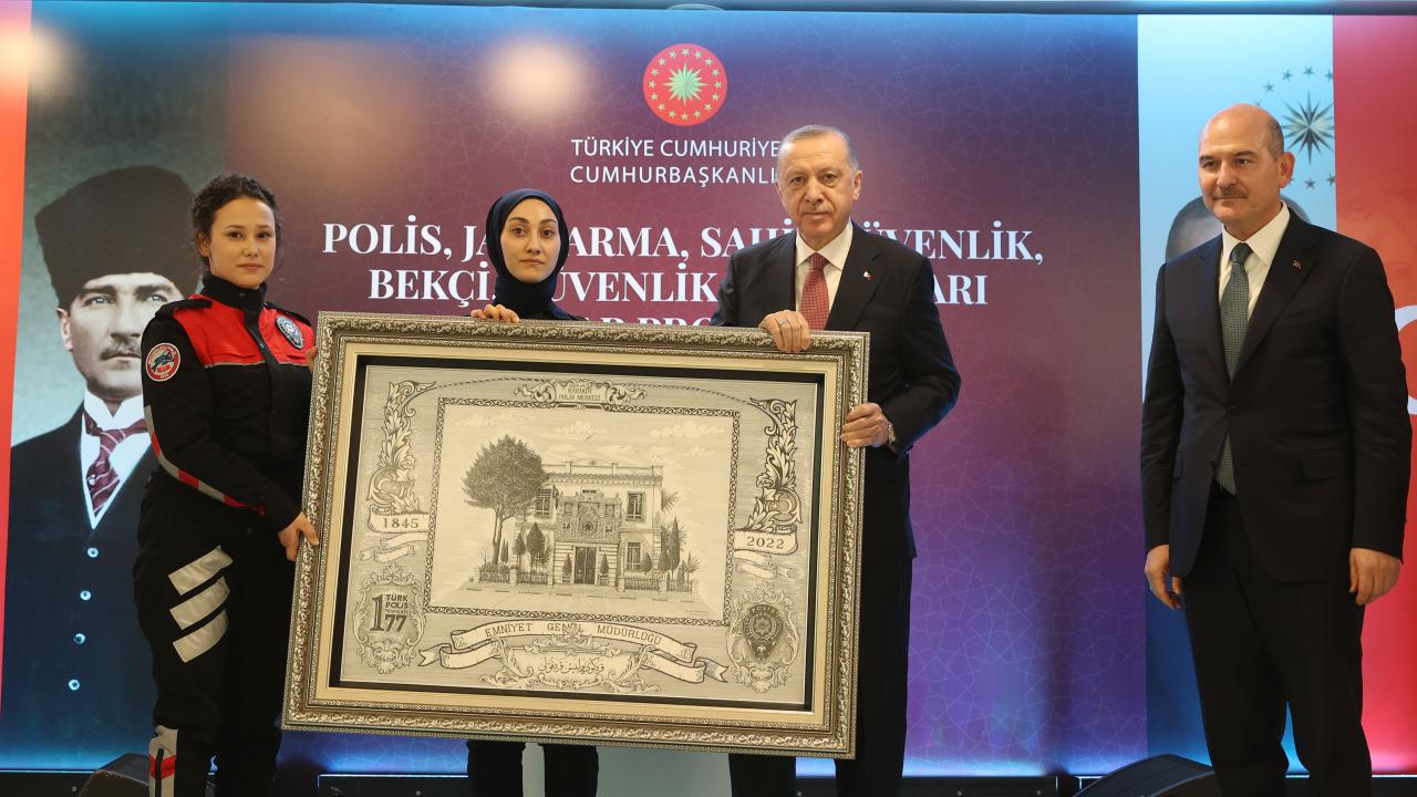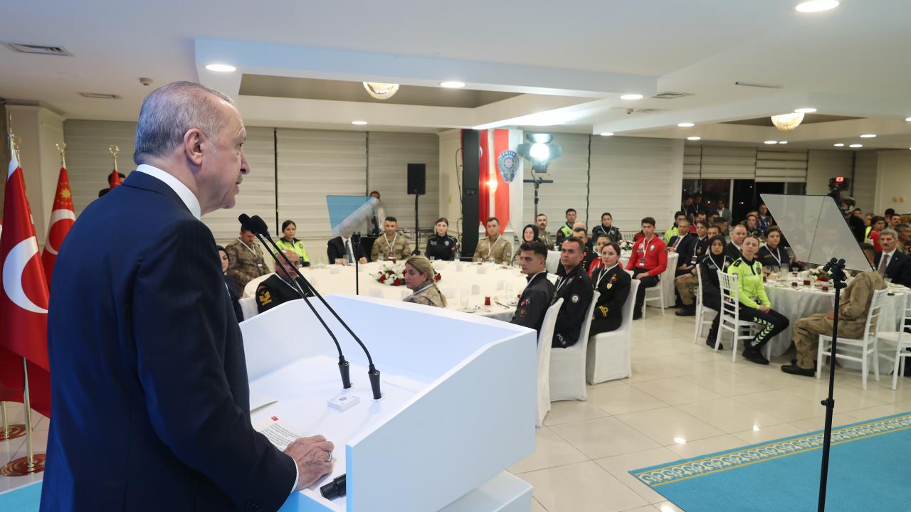Cumhurbaşkanı Erdoğan, polislerin yerleşim merkezlerinde, jandarmanın kırsalda, sahil güvenliğin kıyılarda ifa ettikleri görevlerle vatandaşın huzurunu ve dolayısıyla devletin anlamını koruduğunu belirterek, "Ve özellikle de unutmayınız, bireyde her işin başı sağlık iken toplumda her işin başı güvenliktir, huzurdur. Şayet her bir insanımız can ve mal güvenliğinden emin şekilde hayatını sürdüremiyorsa diğer hiçbir şeyin önemi yoktur. Sizler işte bu huzurun teminatı olan güvenlik güçlerimizin temsilcilerisiniz" diye konuştu.