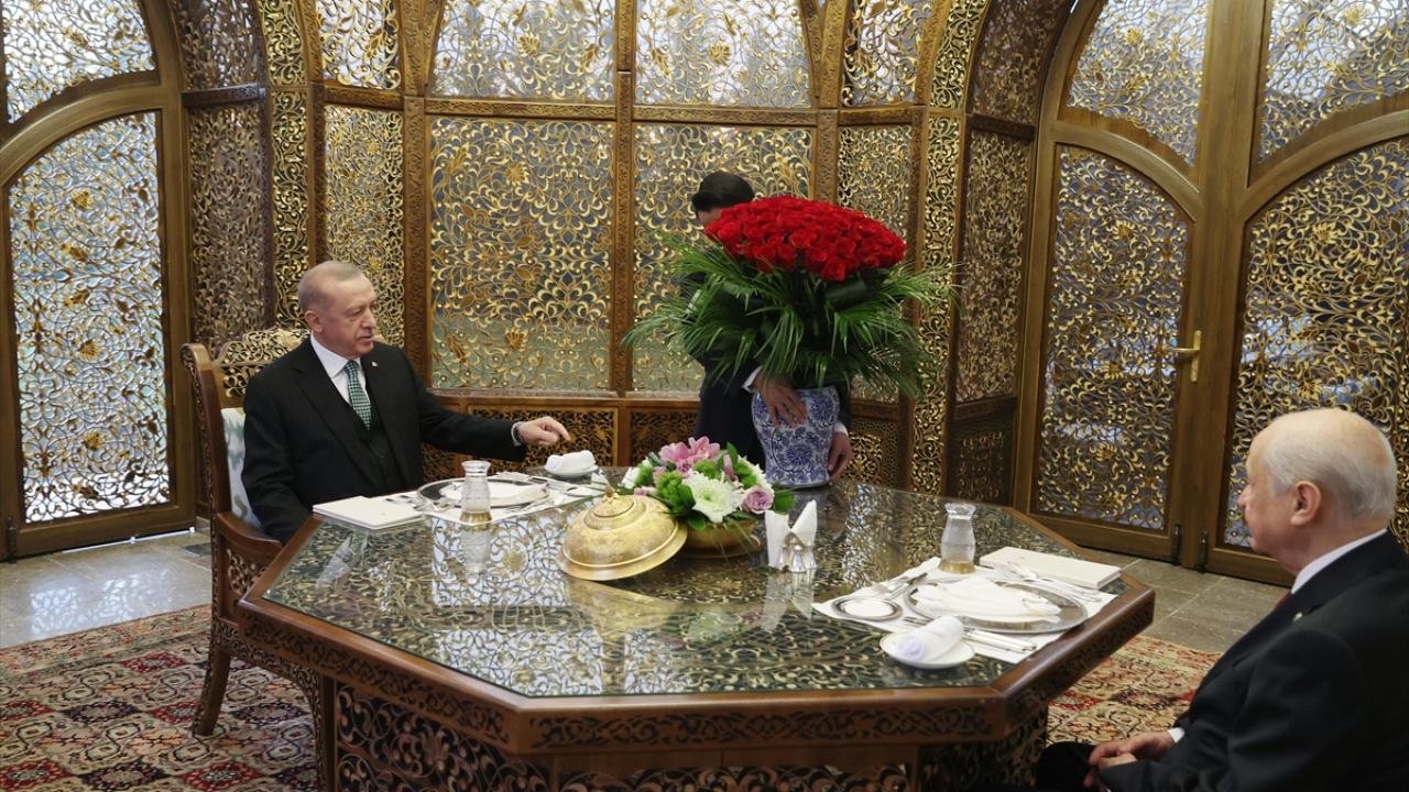 Cumhurbaşkanı Recep Tayyip Erdoğan, MHP Genel Başkanı Devlet Bahçeli ile iftar yemeğinde bir araya geldi.